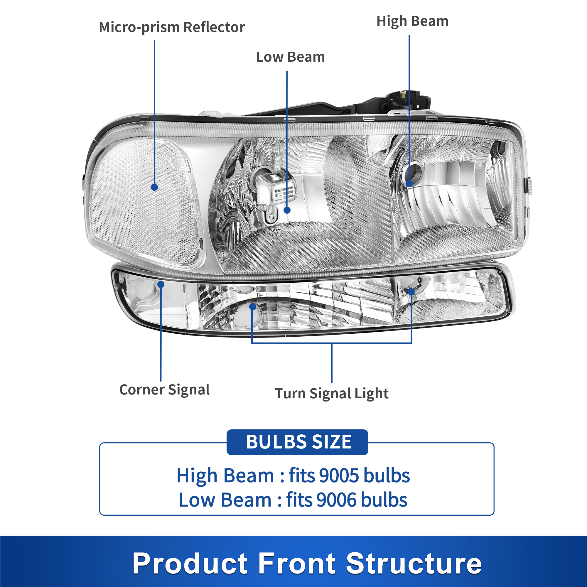 - Low Beam Bulb Type: 9006 Bulbs (Not included)