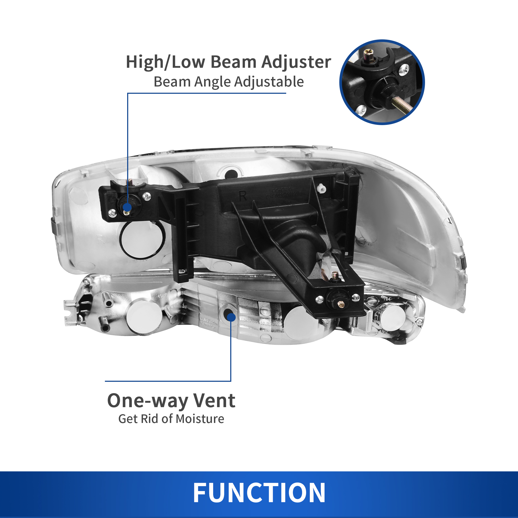 - Color: Chrome Housing + Clear Lens +Clear Reflector