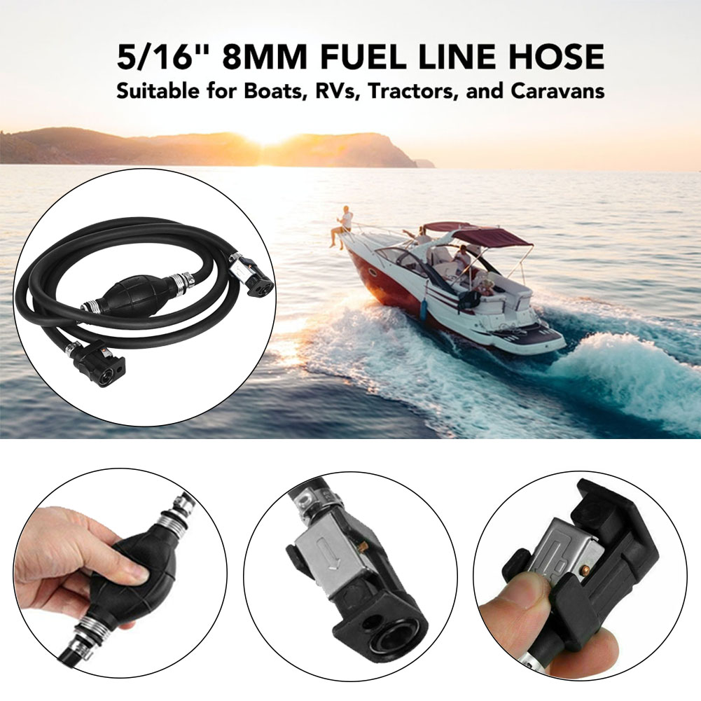 8mm 5/16"Marine Outboard Boat Motor Fuel Gas Hose Line Assembly WITH Primer Bulb
