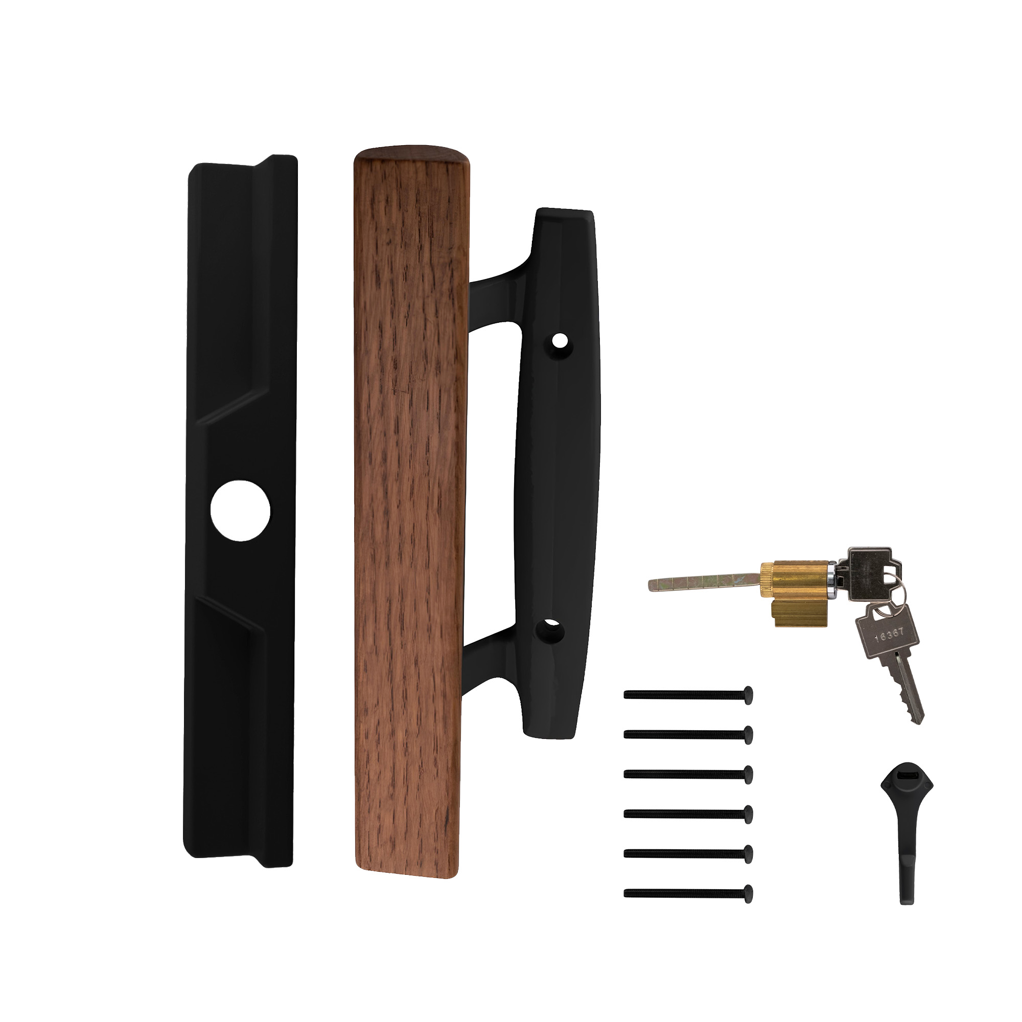 The Brixwell Patio Door Handle With Key Cylinder is designed for sliding doors and comes in a plain black finish that fits well with many home styles. It fits doors with a 3-15/16" hole center, which is common in many sliding door setups. This handle includes a key cylinder to allow the door to be locked when needed. Made from aluminum, it is suitable for both replacing old handles or adding a locking option to a new door. The handle is made for use outdoors and holds up in different weather conditions. Its shape allows for easy sliding action when opening or closing the door. The handle can be used on different types of sliding doors, and installation is suitablefor both DIY users and professionals. This is a simple and useful option for anyone who wants a locking patio door handle in a black finish. It comes with installation hardware for quick setup on standard sliding doors. Designed to support keyed entry, it adds basic security without altering door structure. The compact profile helps maintain a clean look while supporting smooth door movement.