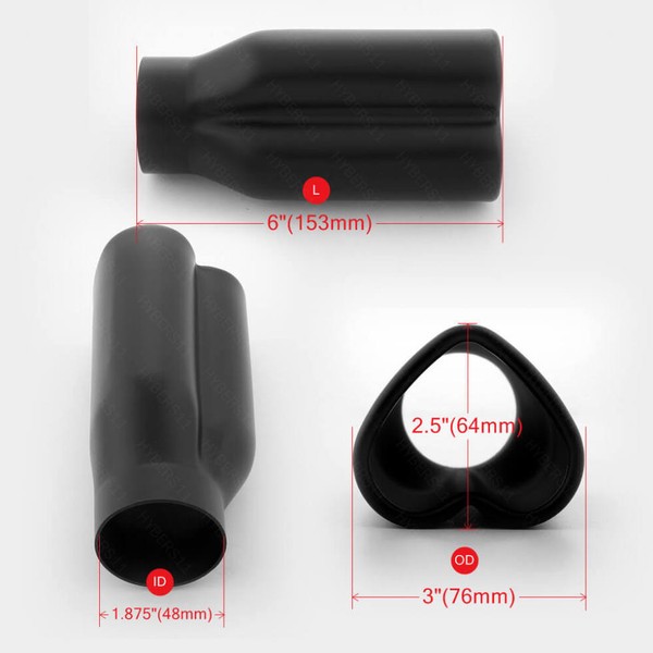 3" In Heart Shaped Exhaust Tip Love 304 Stainless Steel Straight Cut 5.75" LongNeed more exhaust tips? 2" inlet2.25" inlet2.5" inlet2.75" inlet3" inlet or Browse All Tips