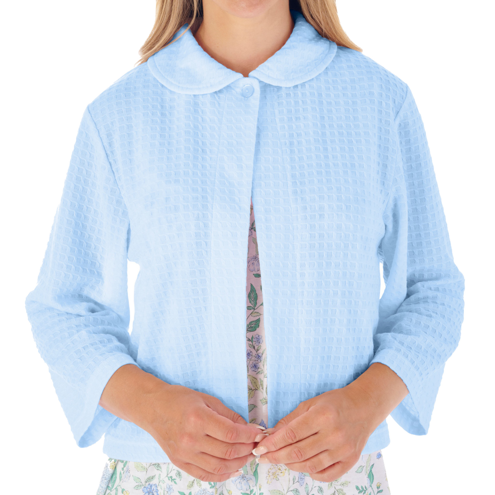 - These ladies waffle knit bed jackets have a collar, one button to fasten and 3/4 length sleeves, making them that perfect extra layer for any time of the year.