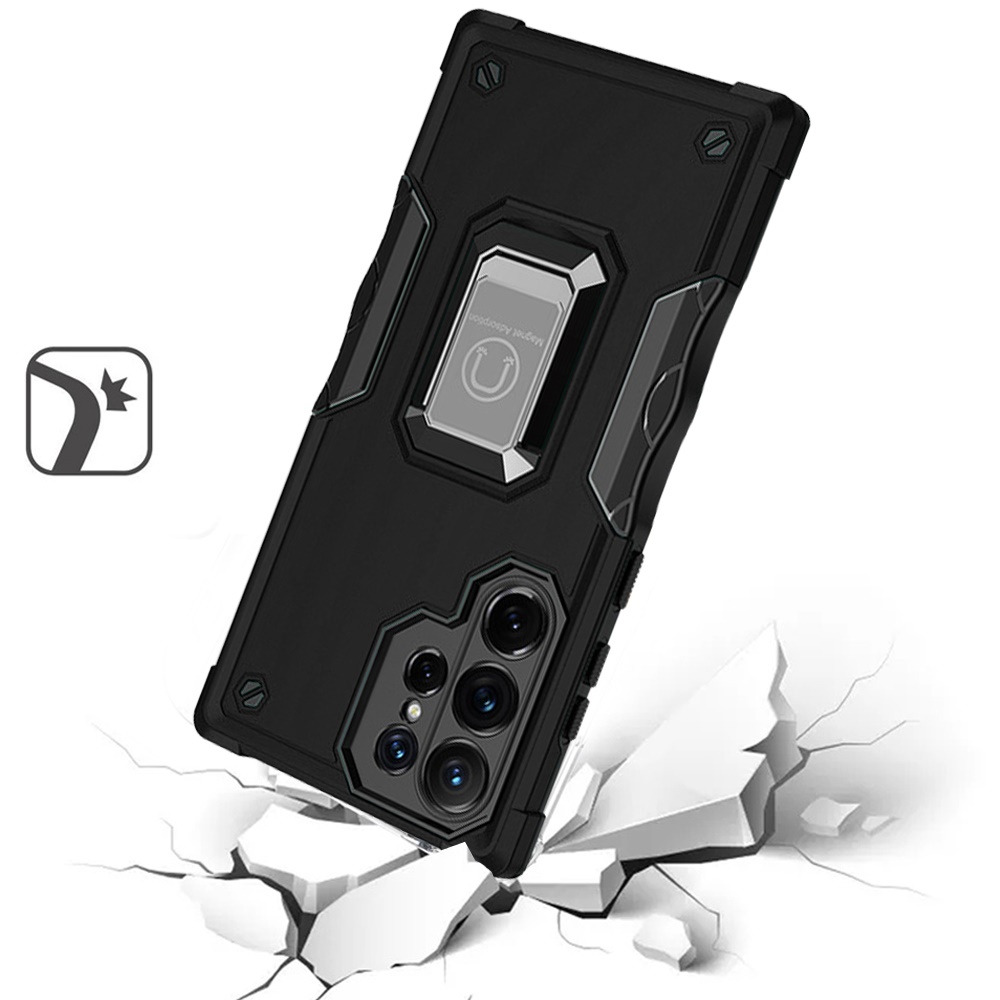 Phone Case for Galaxy S23 Premium Hybrid Case Rotating Metal Ring Stand Magnetic Kickstand Non-Slip Grip Heavy Duty Military Grade Shockproof Bumper Hybrid Hard Case Cover [Magnetic Car Mount Holder Not Included]