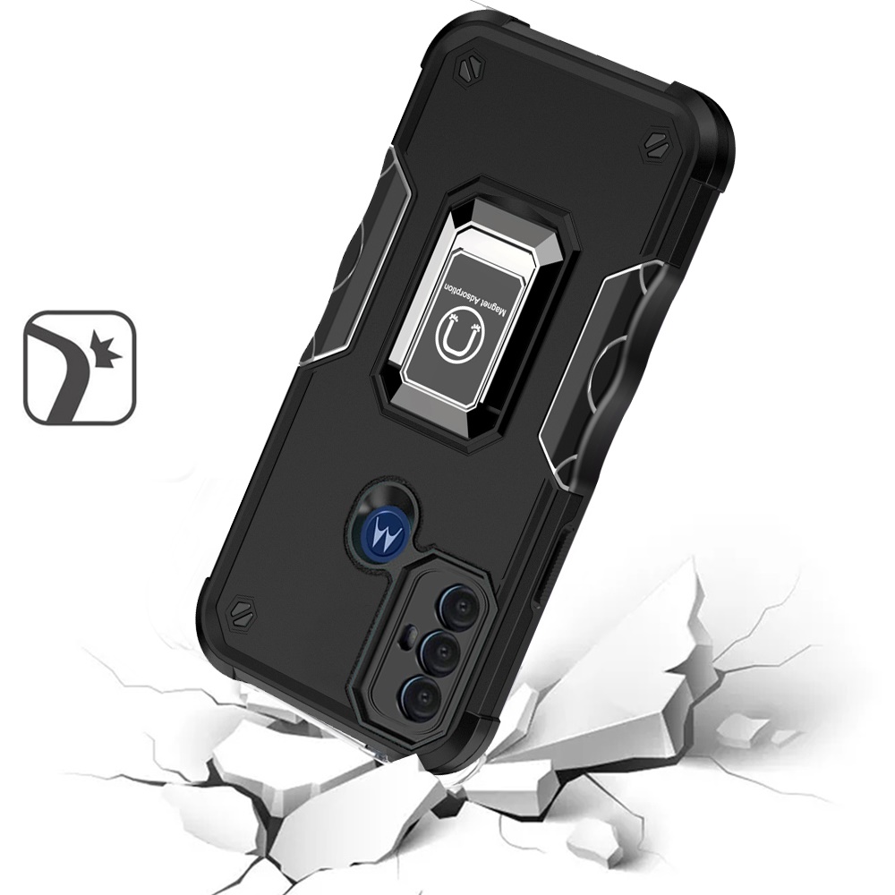 Phone Case for Moto G Play (2023) Premium Hybrid Case Rotating Metal Ring Stand Magnetic Kickstand Non-Slip Grip Heavy Duty Military Grade Shockproof Bumper Hybrid Hard Case Cover [Magnetic Car Mount Holder Not Included]