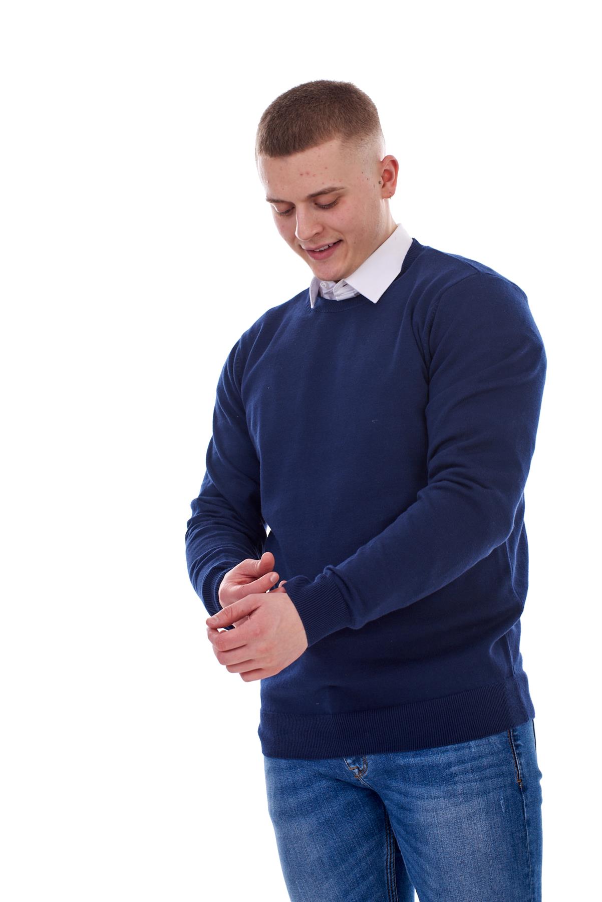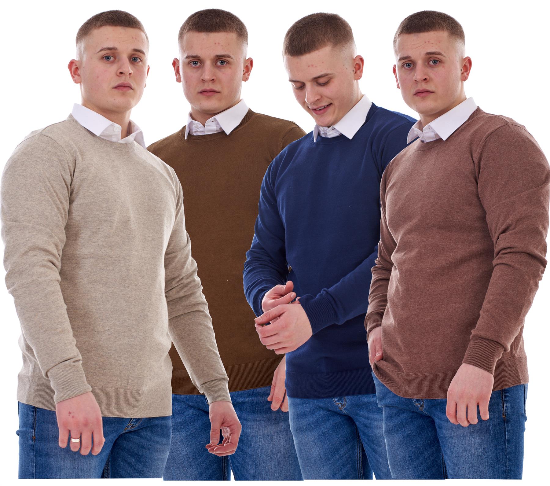 - Mens Plain Jumper Ex-Chain Store Crew Neck Long Sleeve Knitted Pullover Sweater