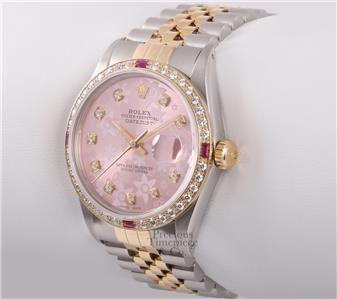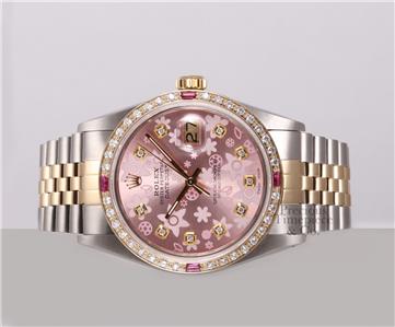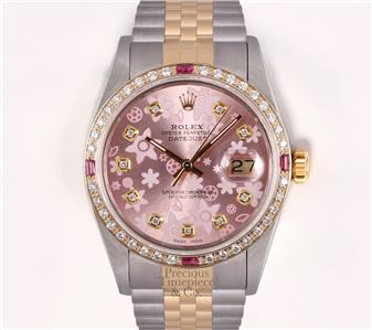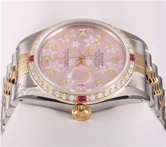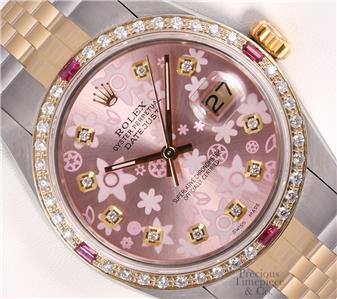 | DIAL | Custom Pink Floral Motif Arab Dial with 10 VS Diamond Hour Markers (G-H Color) |