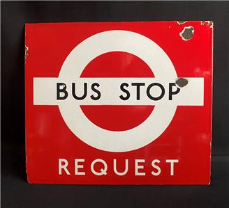 LONDON TRANSPORT BUS STOP REQUEST VINTAGE ENAMEL PORCELAIN ADVERTISING SIGN