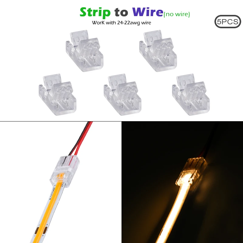 5pcs 2pin COB LED Strip Connector Extension Wire Terminal LED Connectors for 2835 5050 SMD COB Tape Lights Fixed Clamp Clips