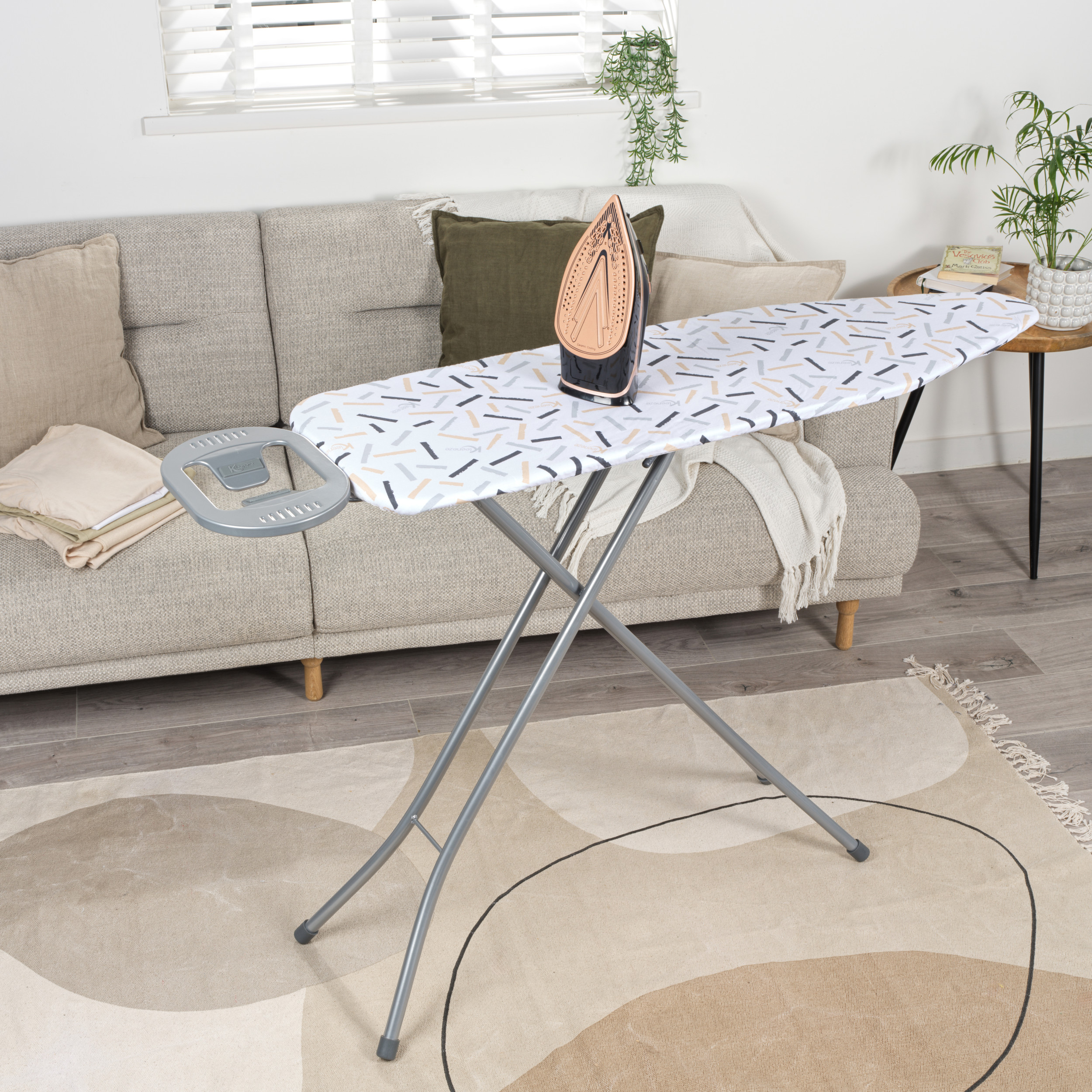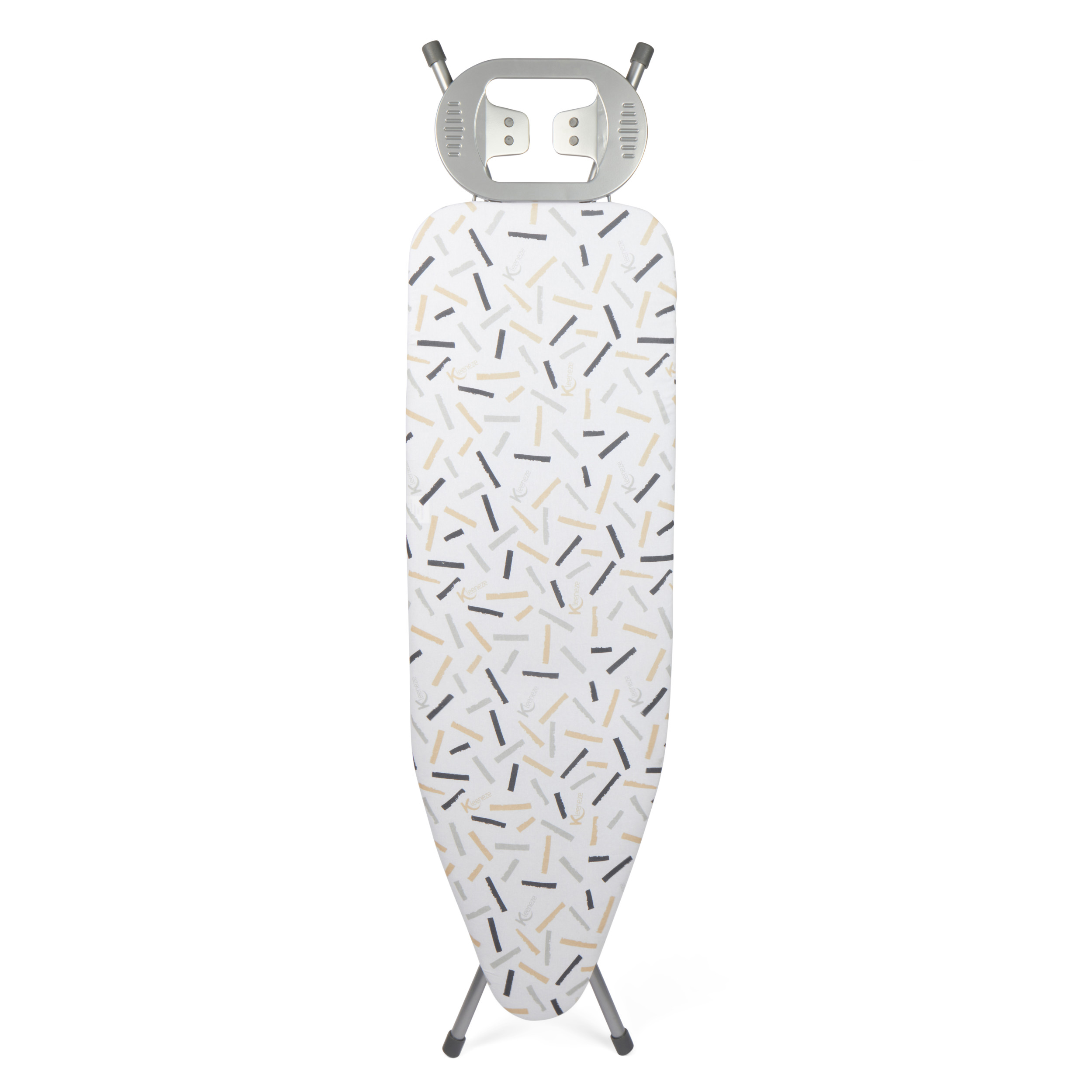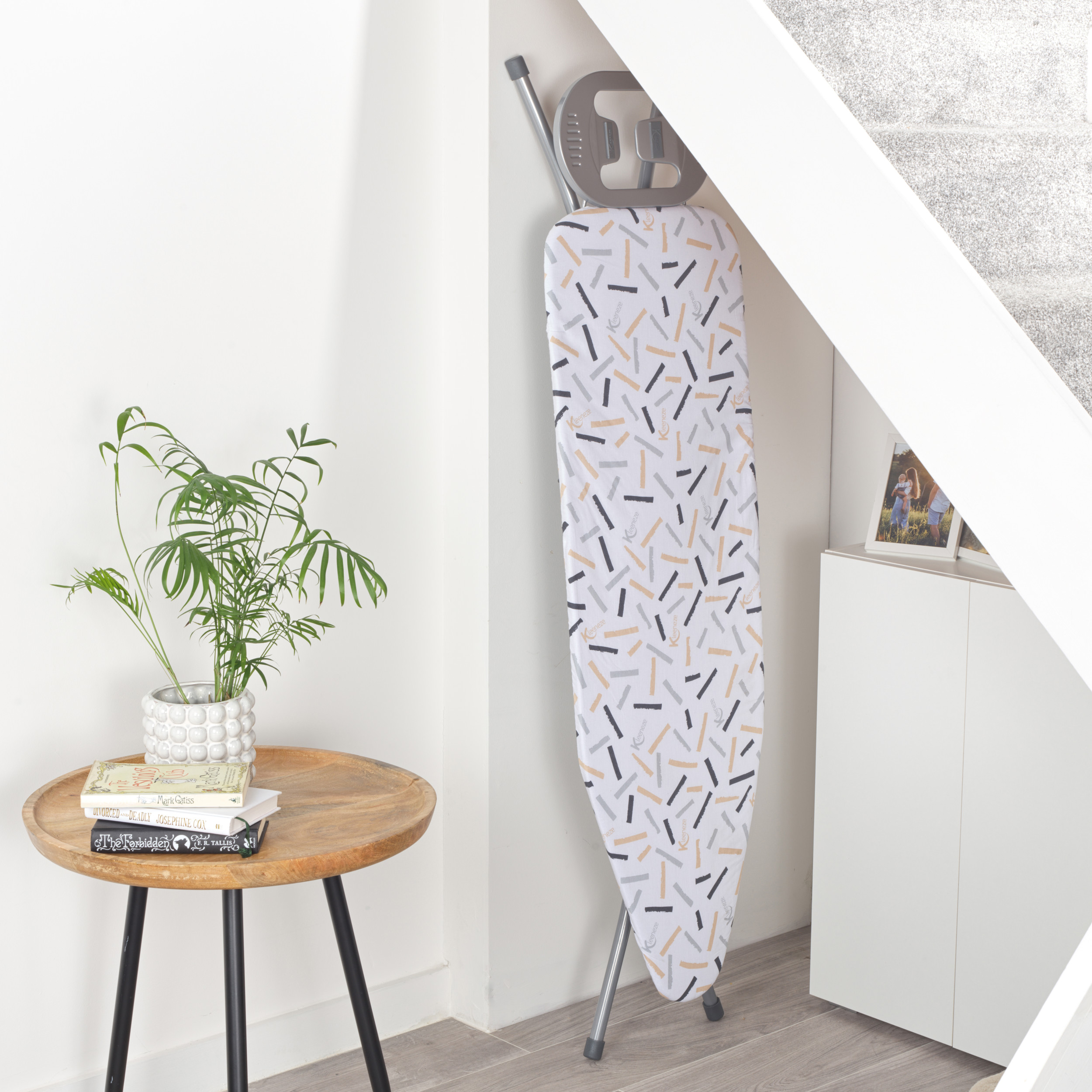 Make light work of laundry with this handy ironing board by Kleeneze, a great addition to any home laundry collection. Featuring a contemporary print design, you can achieve a super smooth press using the machine washable cover made from 100% cotton. Both modern and versatile, this ironing board is perfect to remove creases from bedding, shirts and more, and is conveniently foldable for compact storage. Perfect for any busy household, this ironing board boasts non-slip feet for additional safety