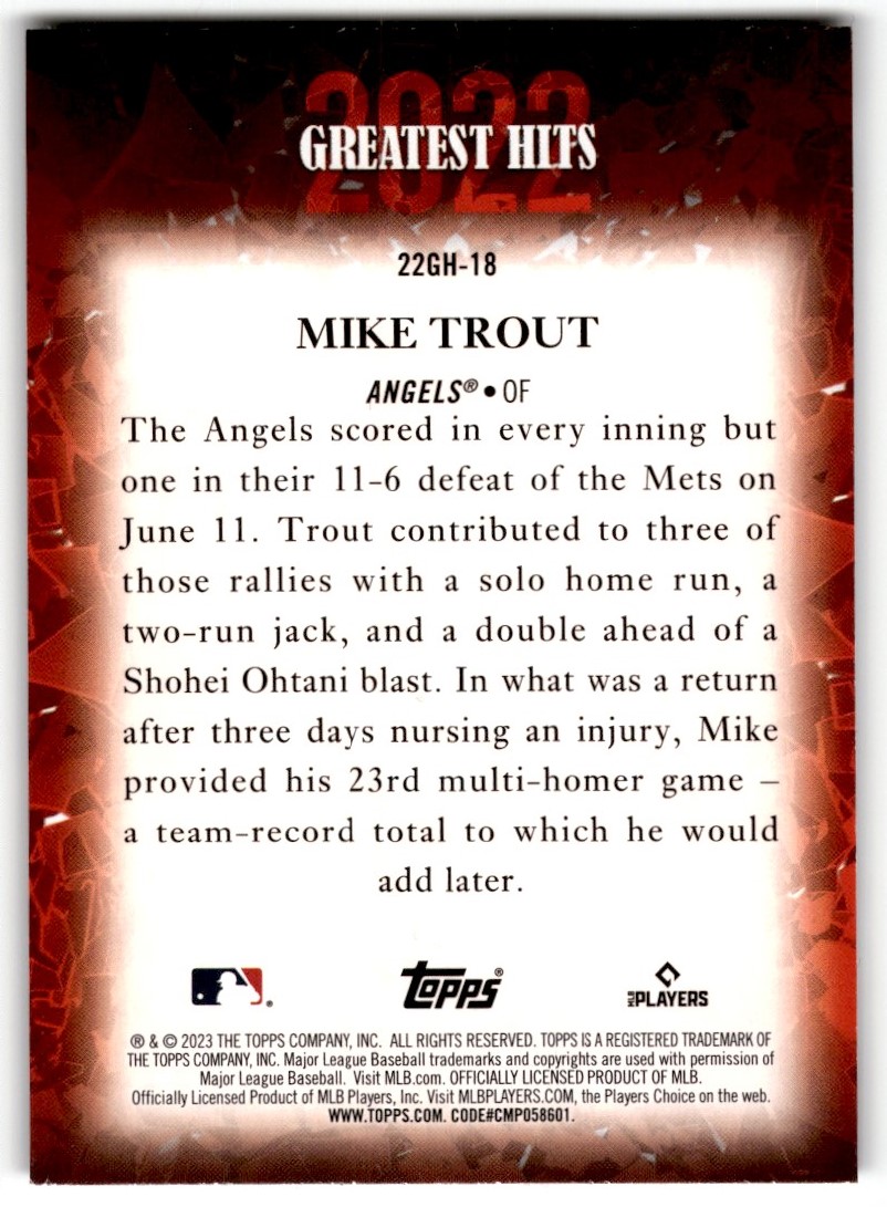 | 2022 Topps '22 Greatest Hits Mike Trout #22GH-18 Los Angeles Angels |