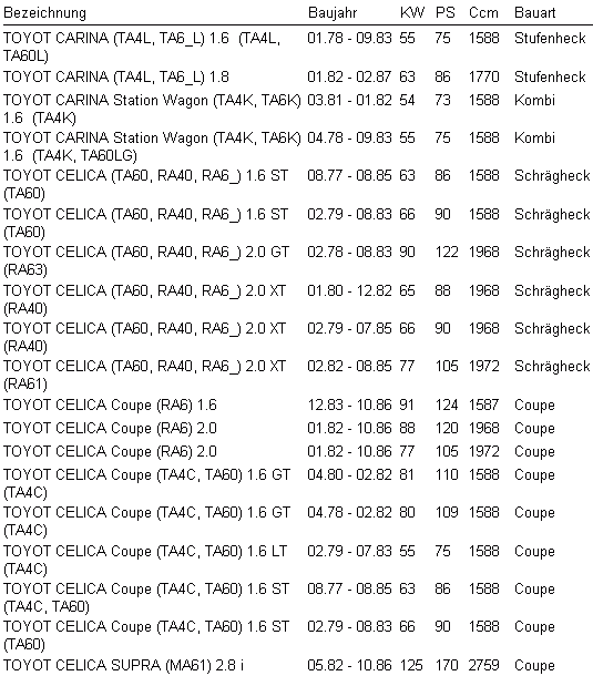entspricht Originalnummer Toyota
