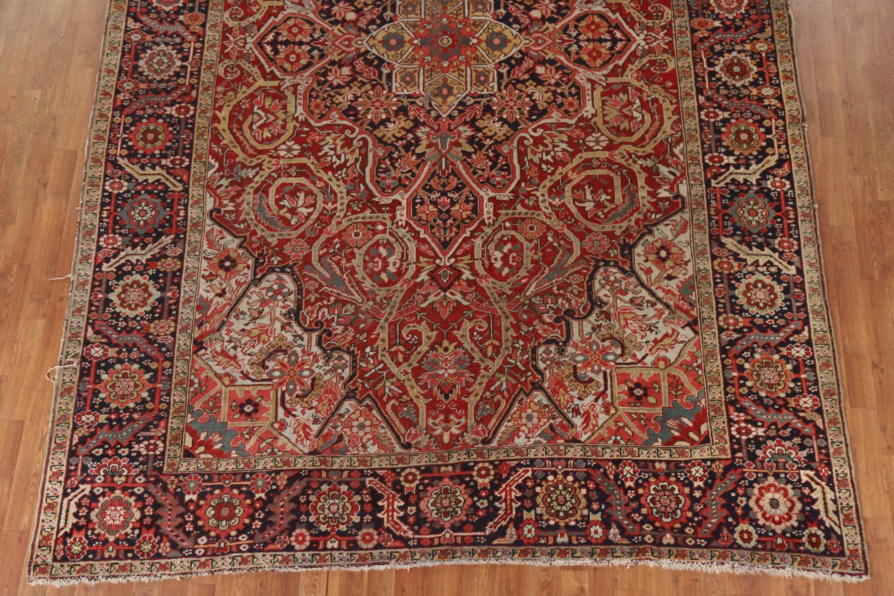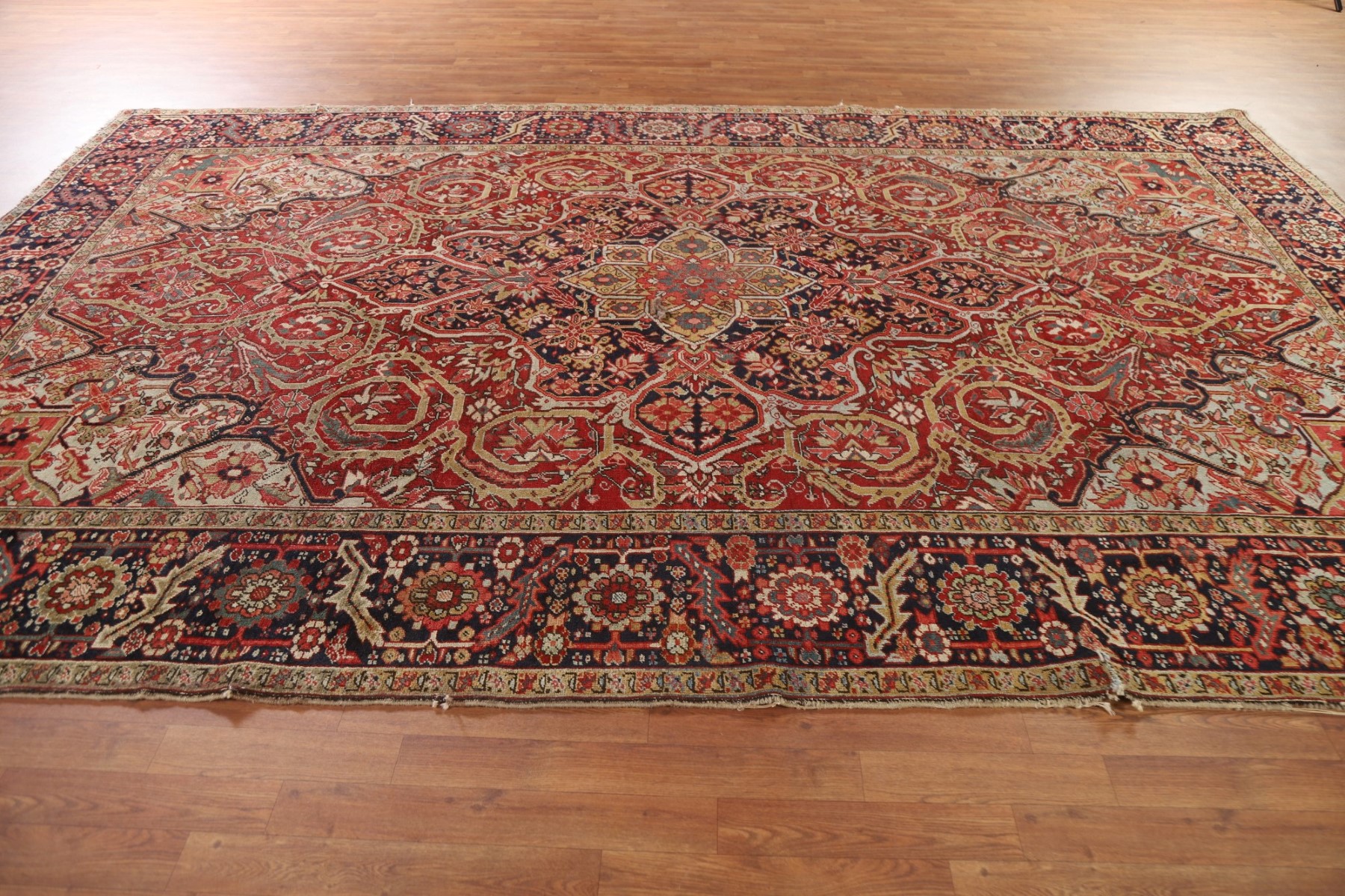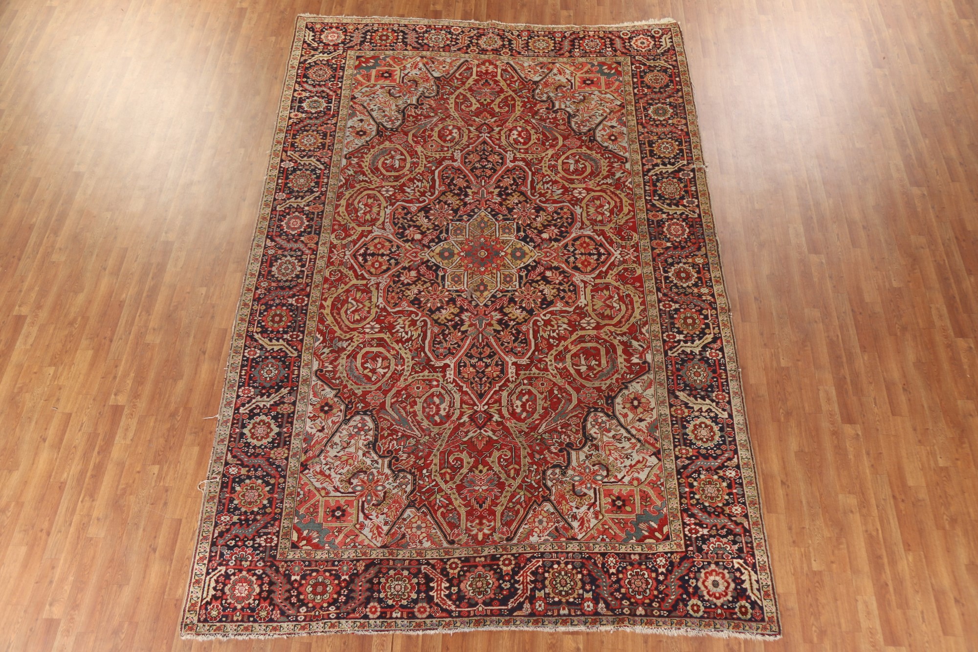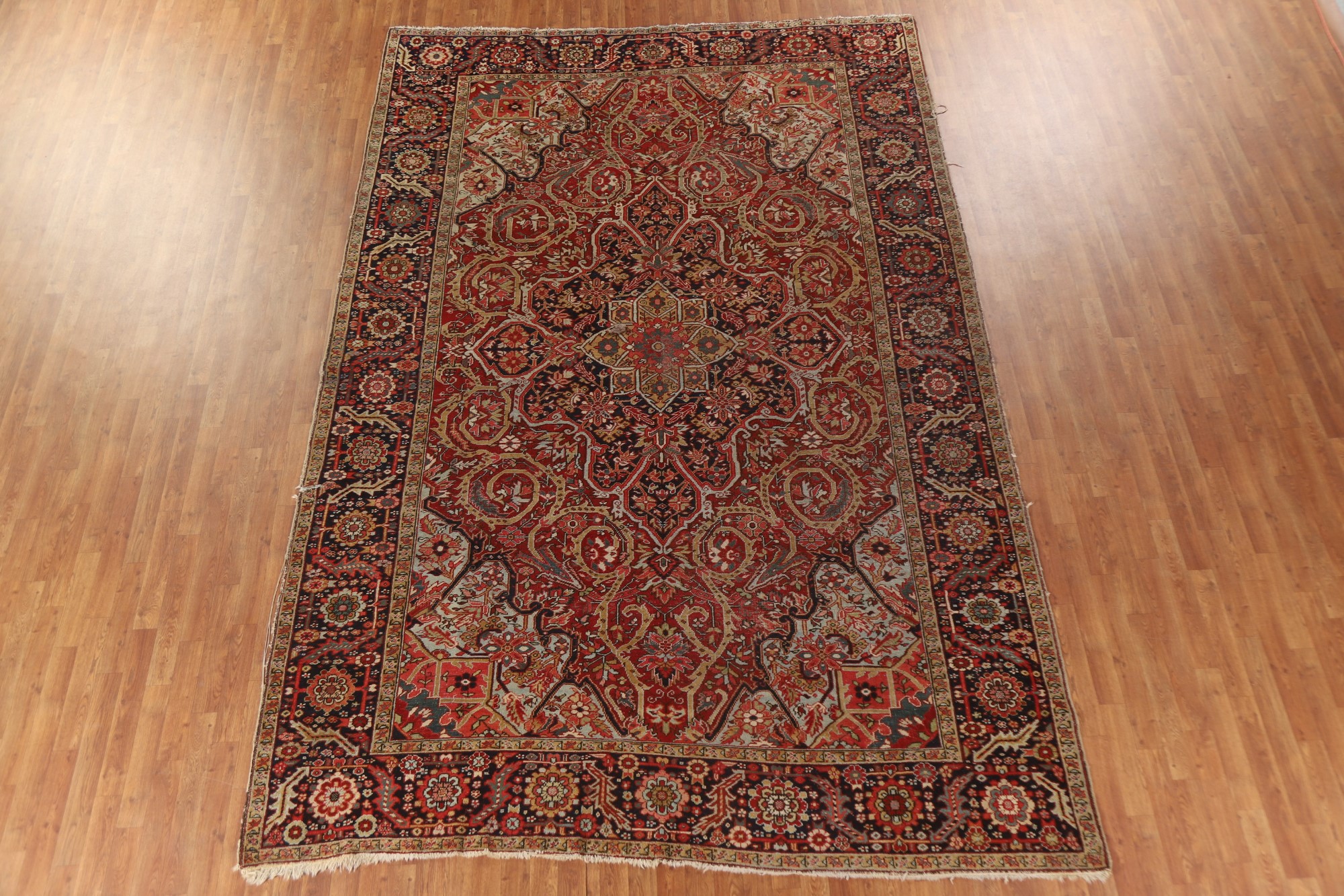 Antique Area Rug 8x13 ft.Pre-1900 Vegetable Dye Heriz Serapi Oriental Wool Rug