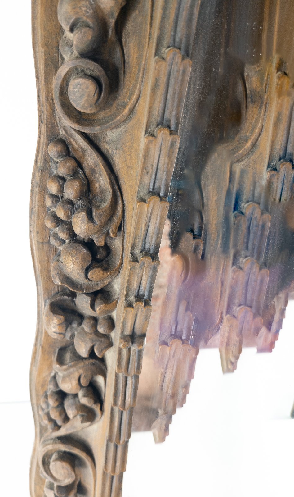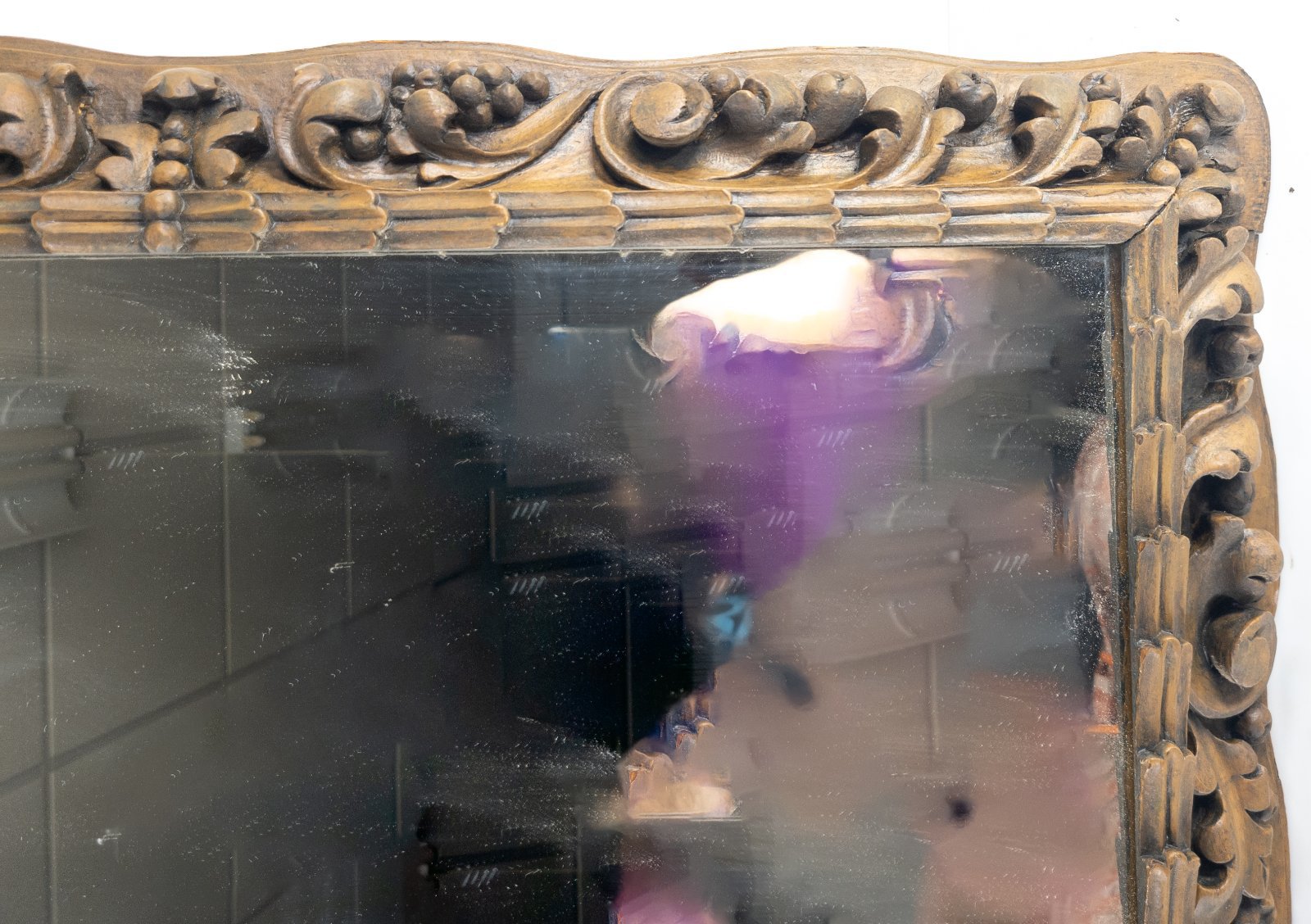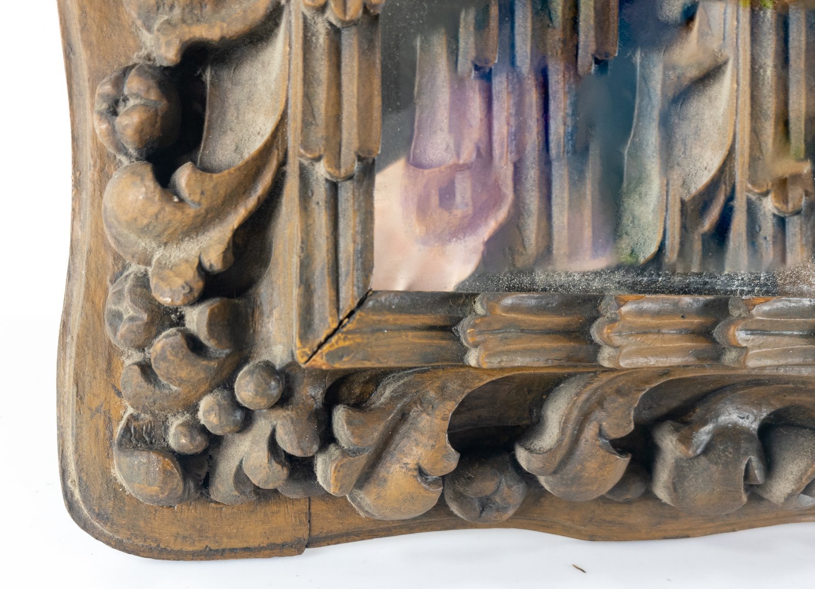 We are selling this nice Baroque Renaissance style carved Continental Italian Walnut frame. This frame may have originally had a painting and now has a mirror and may have originally been gilded over the carved wood border. Came from a prominent NYC estate with many worldy goods.