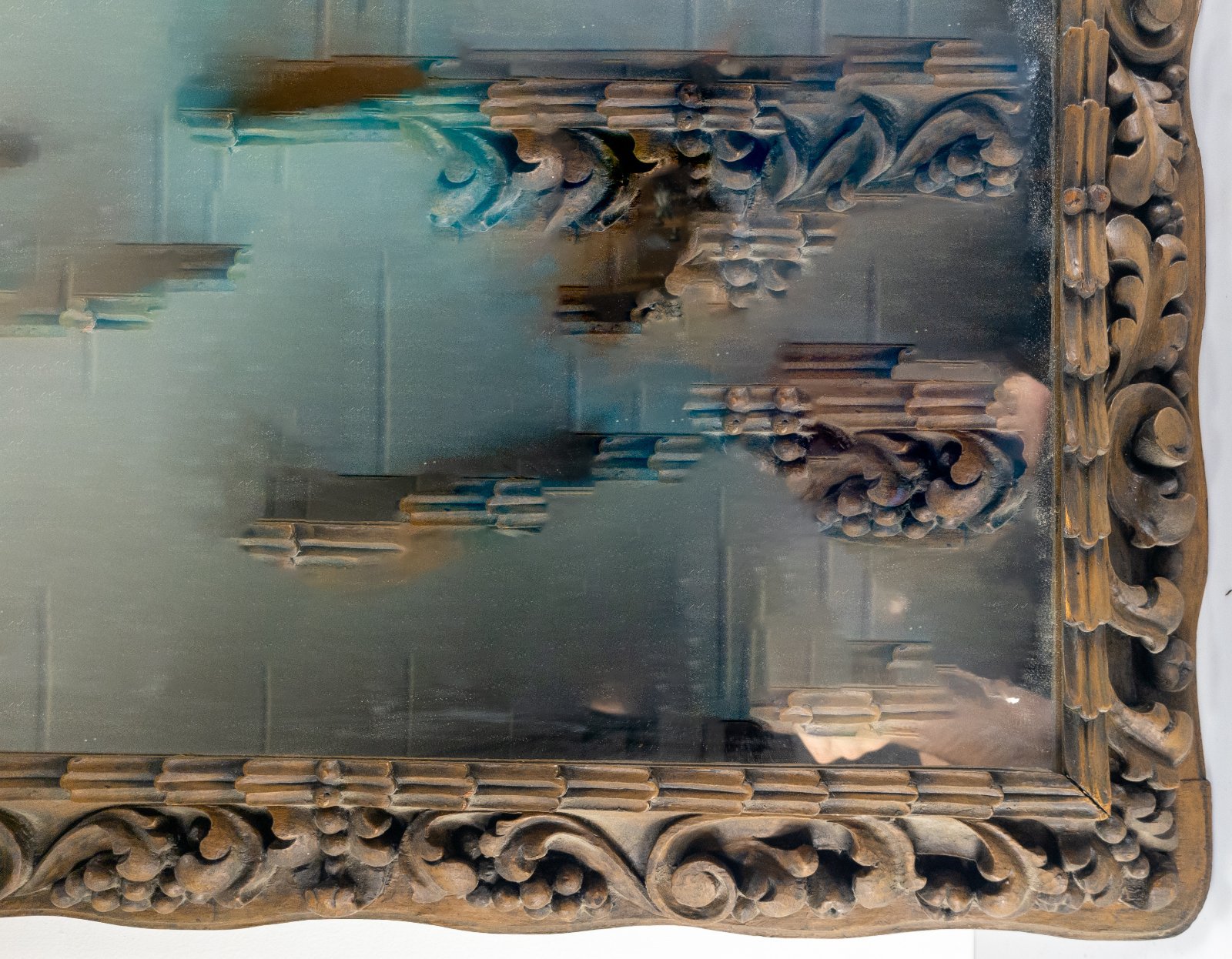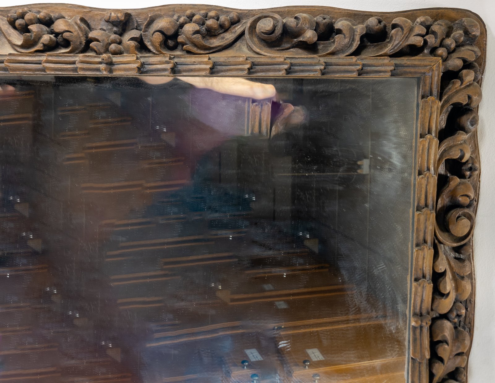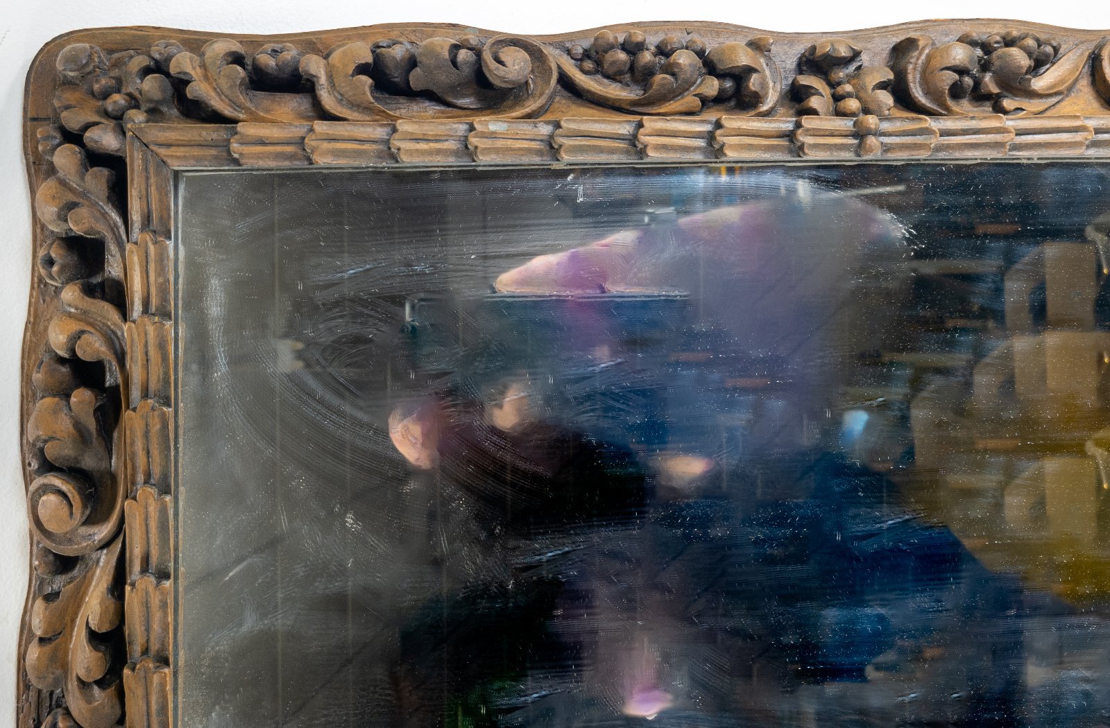 We are selling this nice Baroque Renaissance style carved Continental Italian Walnut frame. This frame may have originally had a painting and now has a mirror and may have originally been gilded over the carved wood border. Came from a prominent NYC estate with many worldy goods.