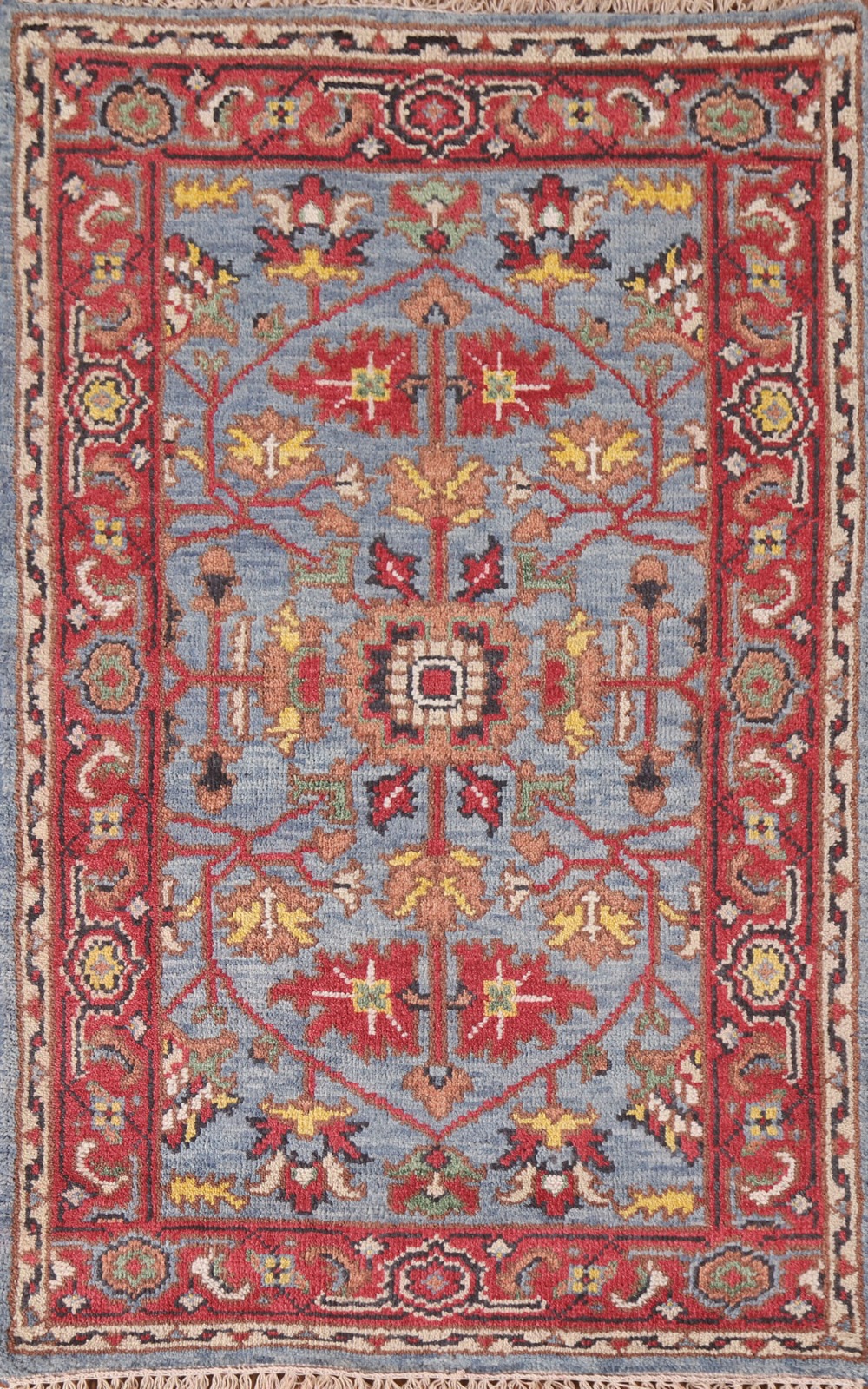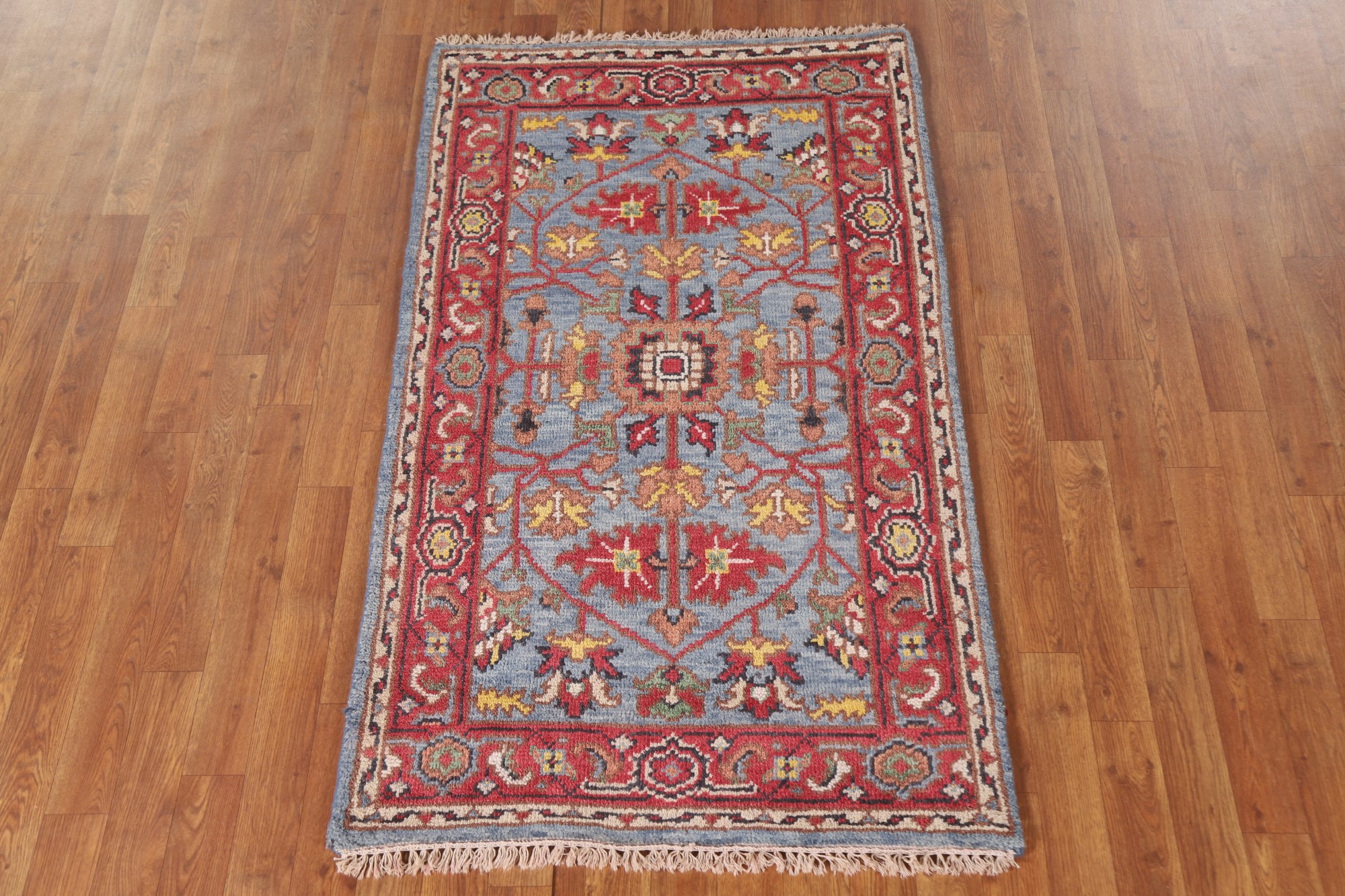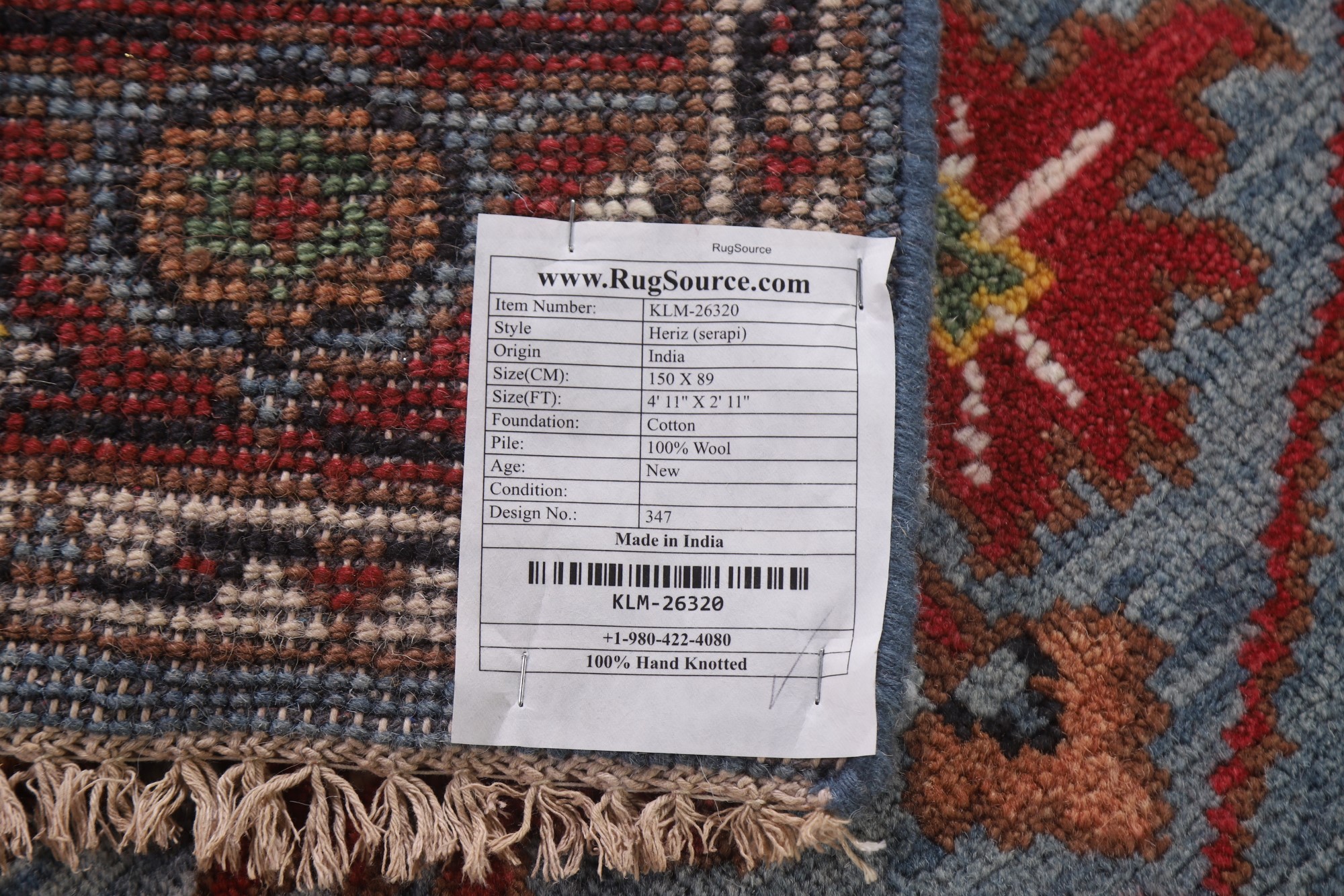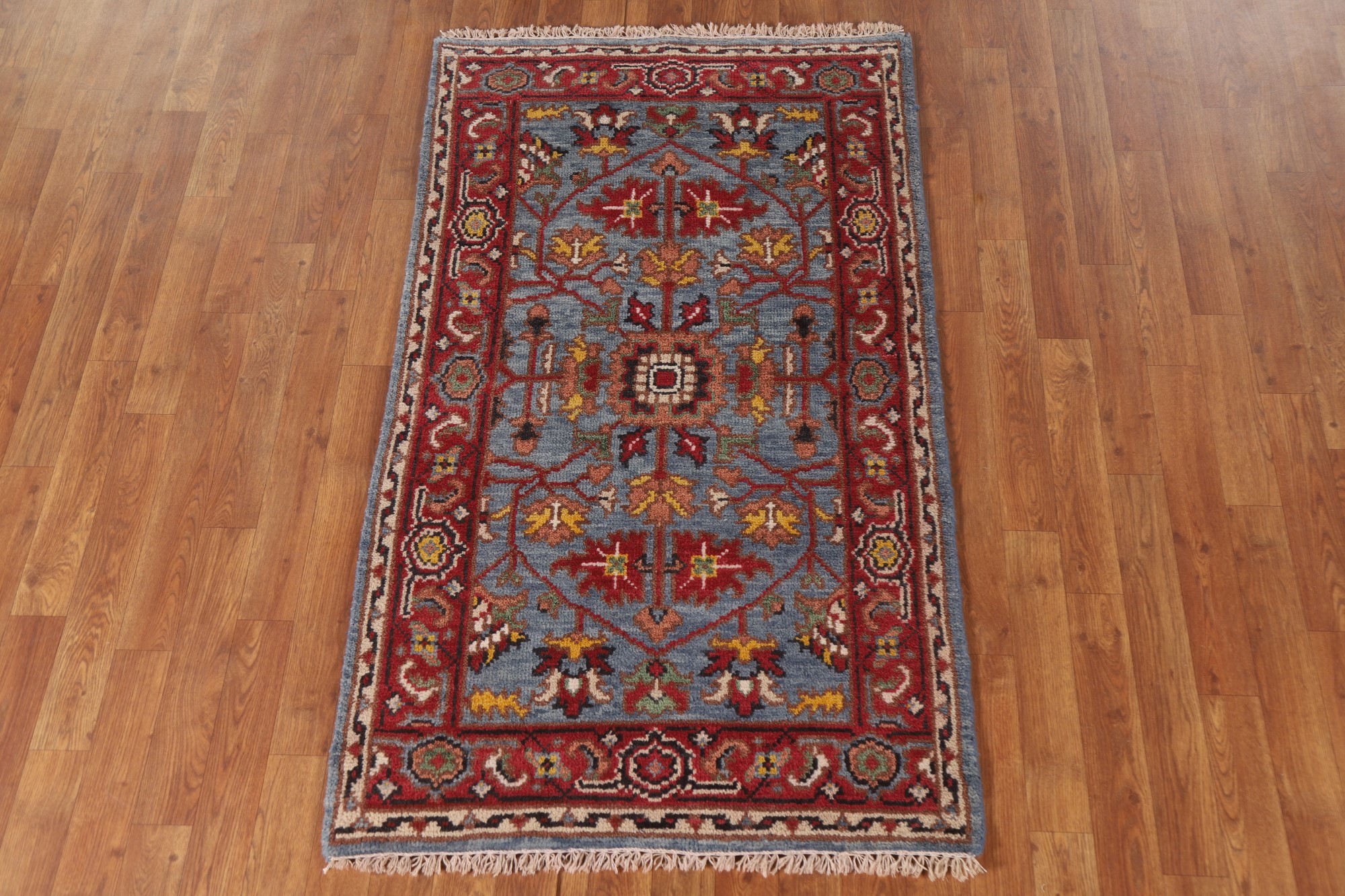 Wool Rug 3x5 ft.Blue Floral Heriz Serapi Oriental Handmade Dining Room Area Rug