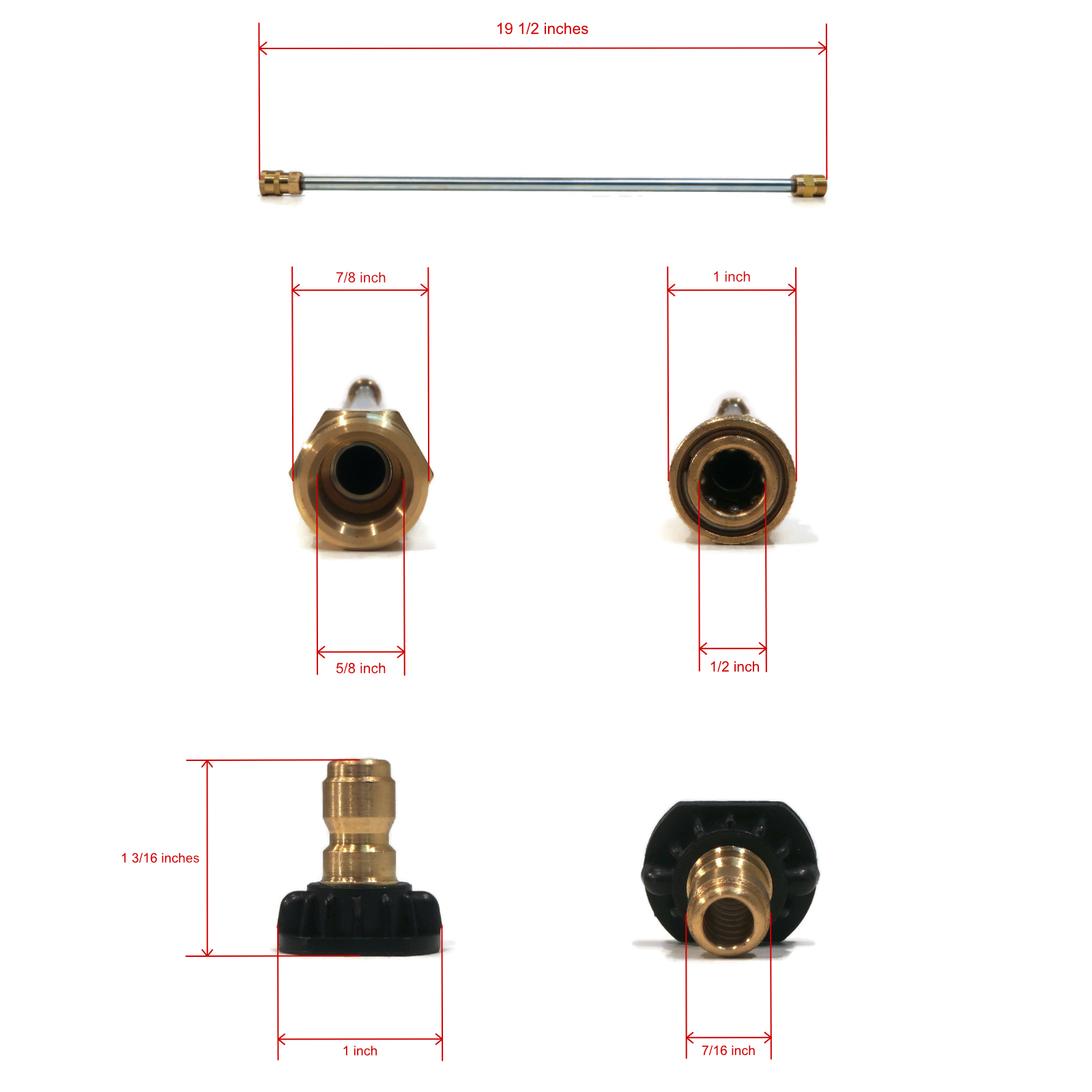 • Includes - (1) Spray Gun, (1) 18" Extension Wand, (5) Spray Nozzles, (1) 35' Pressure Washer Hose; comes as shown in the first image