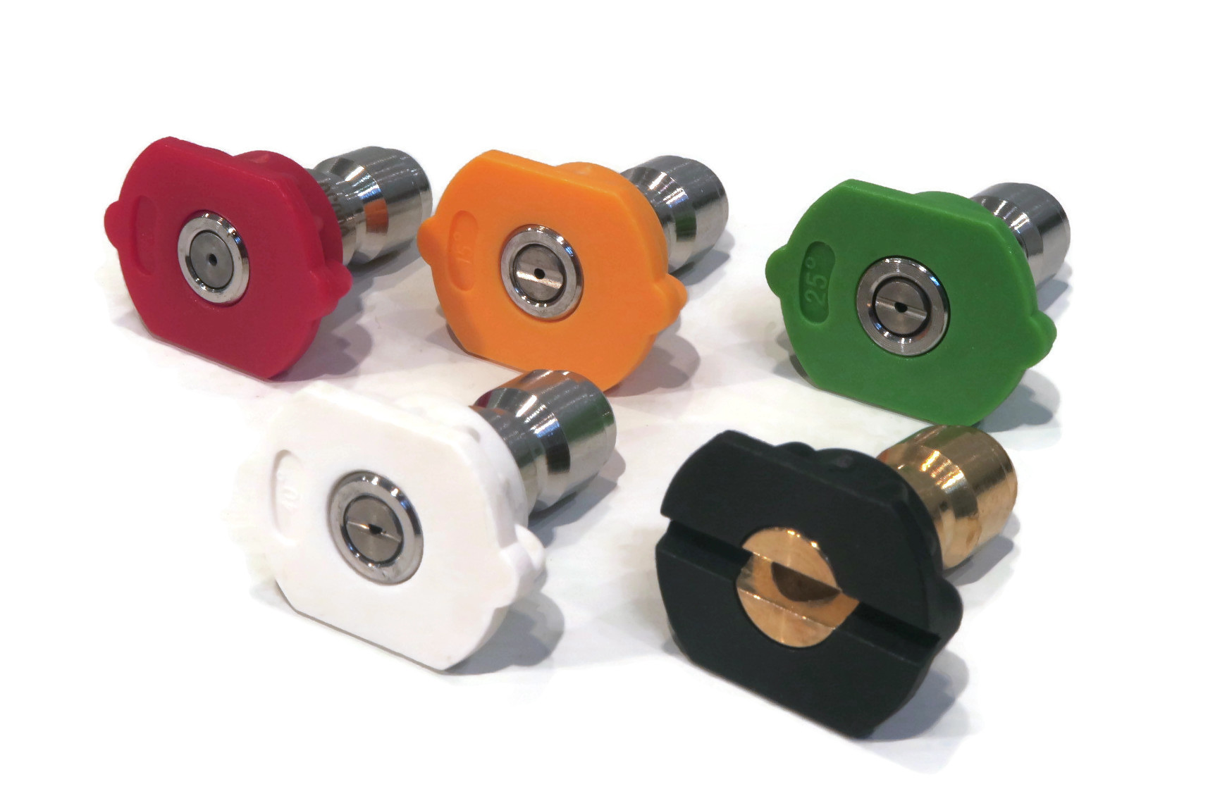 • The spray gun features easy access to the M22 male connector in front of the trigger and the M22 female threaded connection accepts wands with M22 connectors. The sprayer tips are 0, (red), 15, (yellow), 25, (green), 40, (white) & Soap (black) nozzles with 3/8" quick disconnects. The hose features high quality components, 3:1 burst to operating pressure, smooth thermoplastic cover, textile braided reinforcement & seamless inner tube
