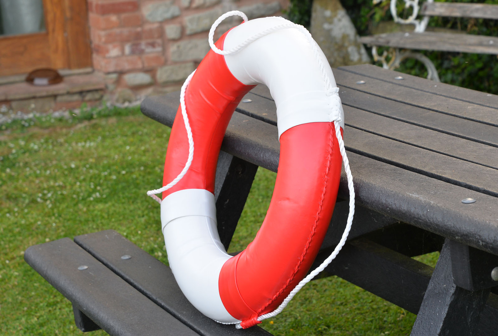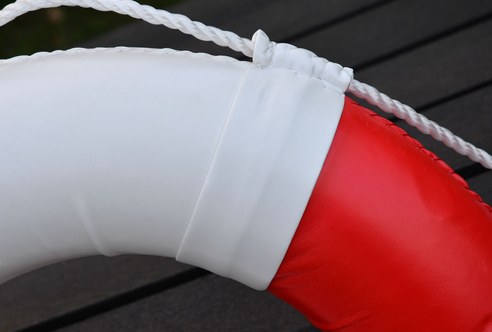 Welcome to my listing for this pair of new traditional coloured red/white life rings which are foam filled and a PU leather outer with white nylon rope.