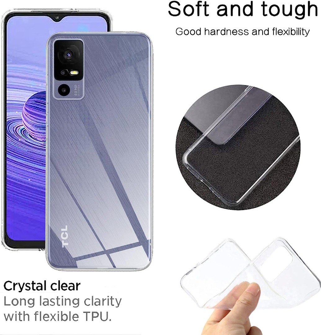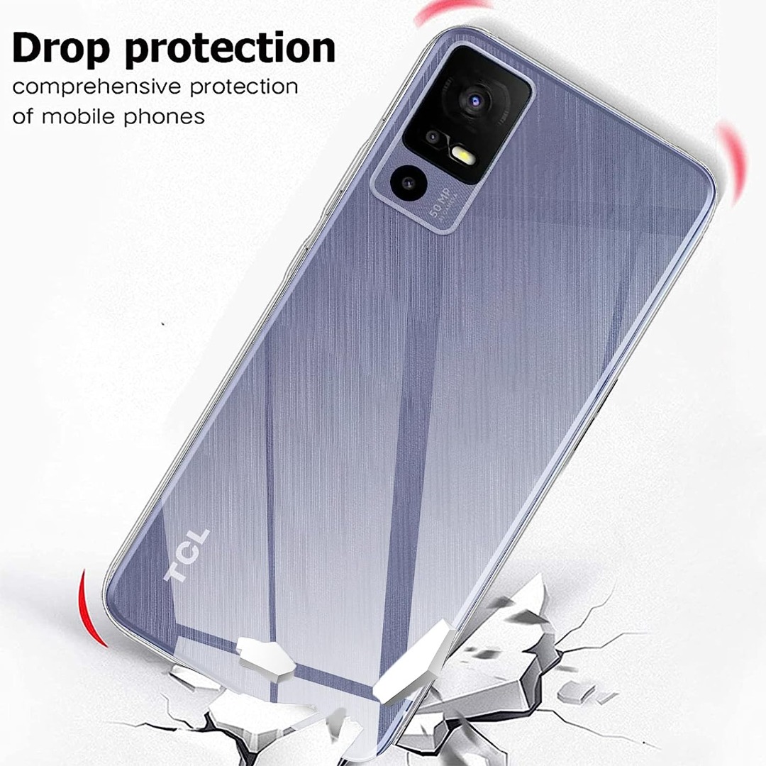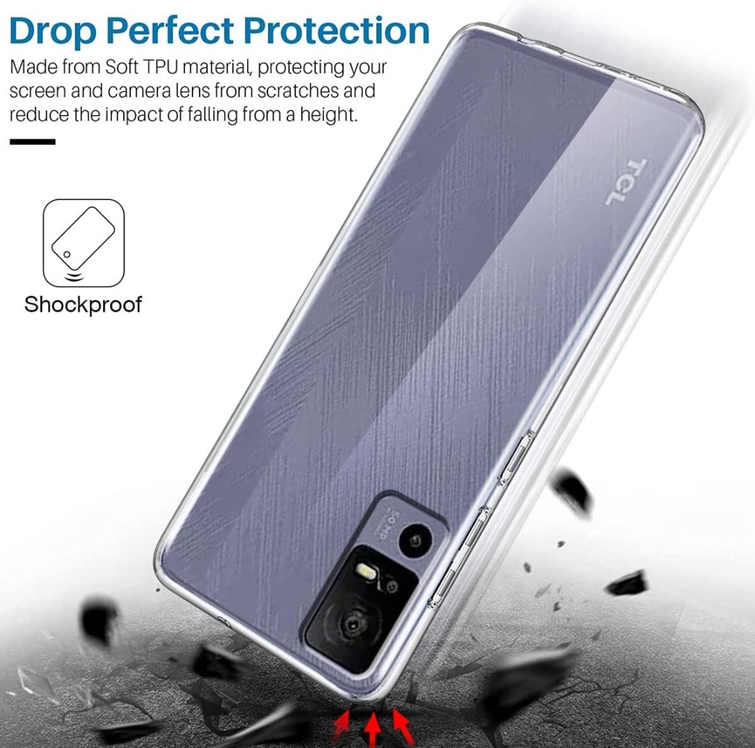For TCL 40R 5G Case Clear Silicone Shockproof Gel Phone Cover + Screen Protector