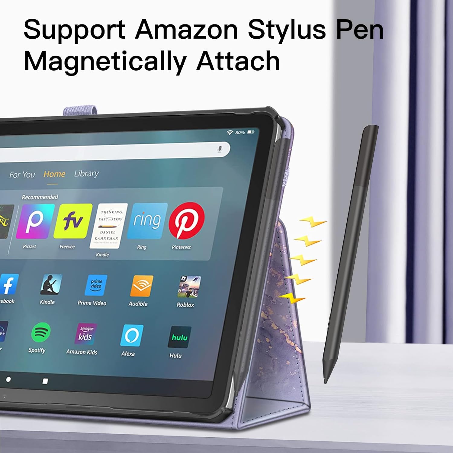 【Auto Wake / Sleep】Built-in magnetic strip provides auto sleep / wake feature, automatically wakes or puts your device to sleep. Designed with a smart holder for your Amazon stylus pen. (Amazon Stylus Pen is NOT included!).
