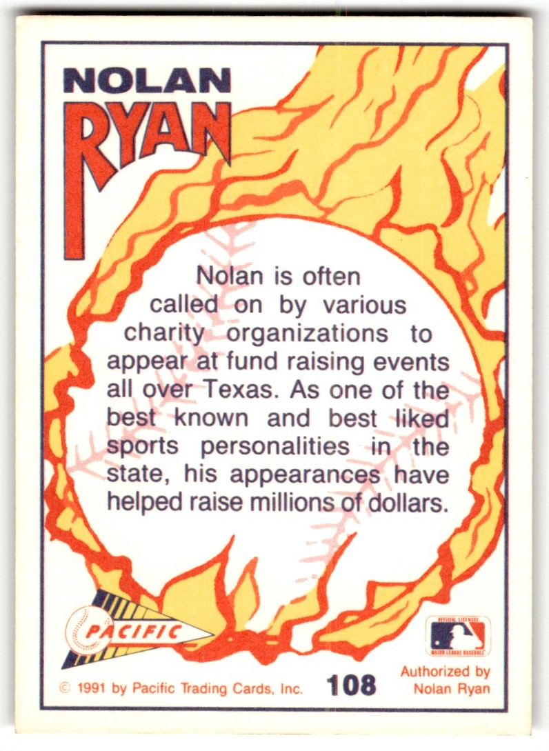 | 1991 Pacific Express Nolan Ryan #108 Texas Rangers |