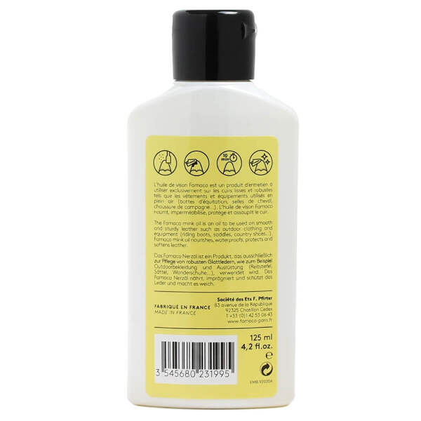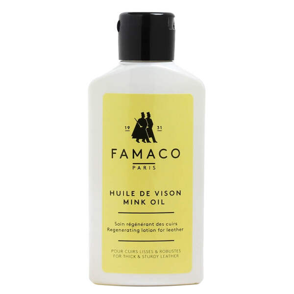 Olio di visone Famaco per nutrire e curare le scarpe in pelle grassa.