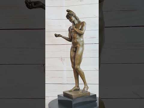This evocative bronze sculpture brings to life the biblical tale of Adam, as told in the Book of Genesis. Fashioned by God from the dust, Adam is depicted walking amidst the lush Garden of Eden, entrusted "to work it and watch over it." Despite God's command to avoid the Tree of Knowledge, Adam's fate is sealed when he consumes the forbidden apple, handed to him by Eve, who was seduced by the serpent. The artwork captures the poignant moment after the fall, as a fig leaf now covers Adam’s once-unashamed nudity, and the apple is dropped from his hand as he seeks to hide from God's sight.