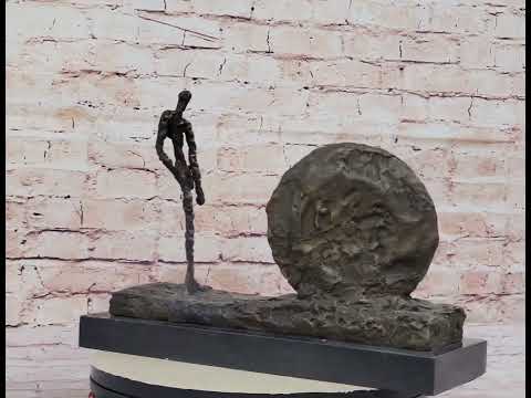 Embracing the Surrealist art movement, Commetti demonstrates his distinctive artistic vision through this intriguing sculpture. The piece invites viewers to delve into the enigmatic world of Surrealism, where reality and imagination collide, giving form to abstract concepts and emotions. Commetti's portrayal of a slender figure positioned in front of a towering and expansive wheel sparks curiosity and encourages individual interpretation.