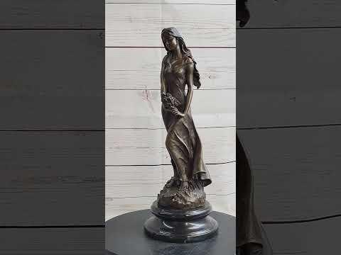In her hands, she cradles a bouquet of flowers, a symbol of nature's beauty. Crafted with utmost care, this sculpture is made of 100% bronze and boasts a captivating brown patina. Through the revered "Lost Wax Method," each intricate detail is preserved, capturing the artist's vision. Resting on a sleek round black base, this original artwork is a testament to the artist's skill and is signed by Milo. Embrace the enchantment of spring and indulge in daydreams, cherishing the beauty of life's renewal.