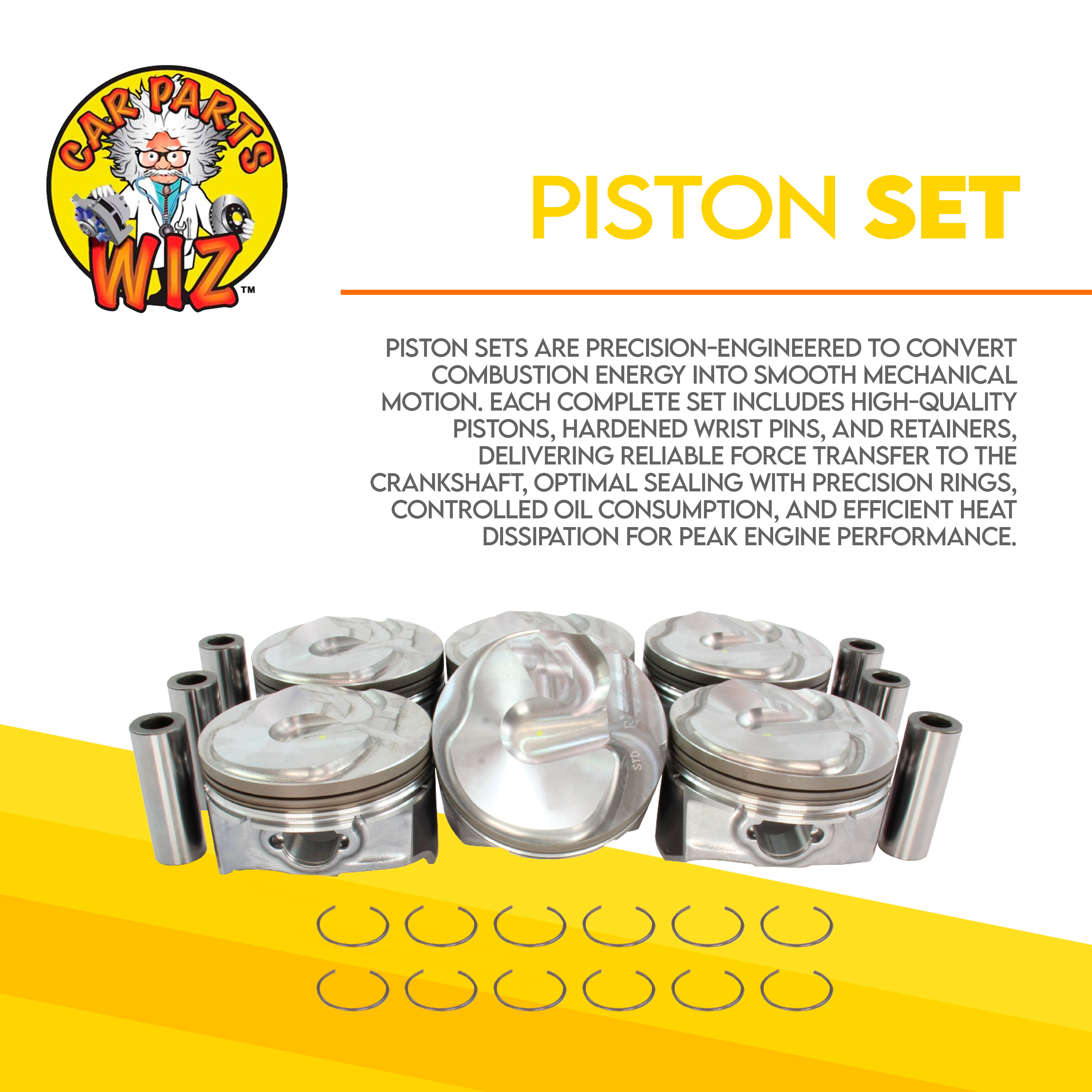 Piston Sets are precision-engineered to convert combustion energy into smooth mechanical motion. Each complete set includes high-quality pistons, hardened wrist pins, and retainers, delivering reliable force transfer to the crankshaft, optimal sealing with precision rings, controlled oil consumption, and efficient heat dissipation for peak engine performance.