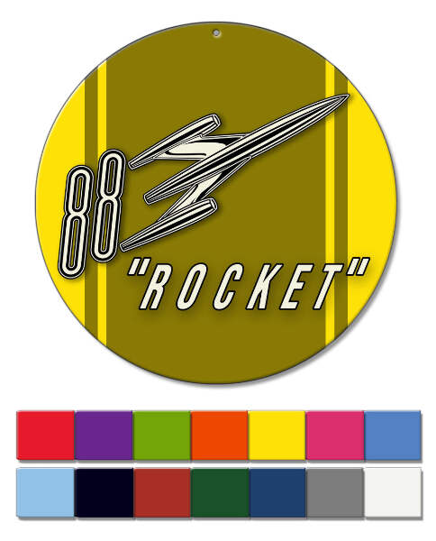 Perfect for all car enthusiasts that want to show their passion for their car. This Novelty Round Sign shows the magnificent 1954 - 1956 Oldsmobile Super 88 Rocket Emblem on a vibrant and colorful background with racing stripes. It look amazing on walls at home, garage, office, workshop, man cave, in any room, or anywhere you feel you deserve a special decoration spot, even outside on your garage doors.