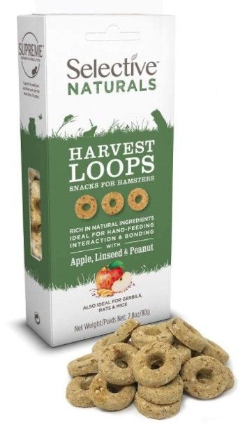 Selective Naturals Harvest Loops delicious and nutritious hamster and gerbil treats that perfectly complement the Selective food range. With no added sugars and artificial colors, they are also ideal for pet rats and mice. Its the tasty, healthy way to treat your pets.