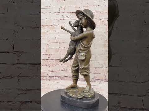 Embrace the heartwarming charm of our Genuine Solid Bronze Sculpture featuring a cute boy with a baby lamb, a delightful addition to any farm-themed decoration. Handcrafted with passion and skill, this endearing figurine captures a tender moment between the boy and his adorable companion. Created using the time-honored lost wax method, the sculpture embodies the artist's commitment to preserving the genuine emotions and intricate details of the scene.