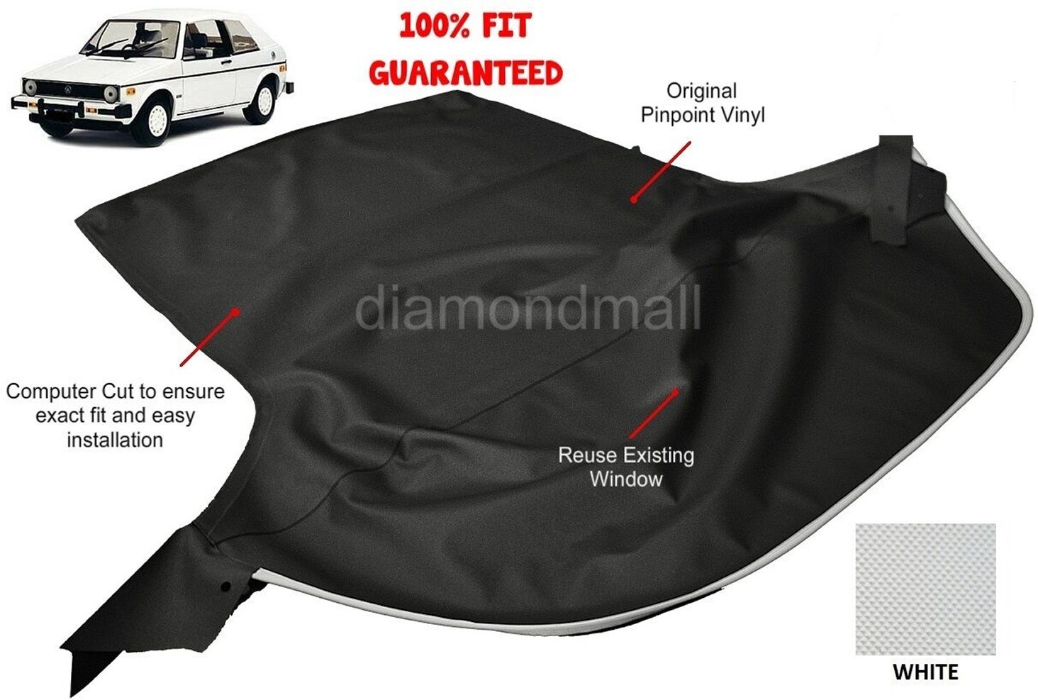 DiamondMall is a respected and valued eBay seller. DiamondMall is a premium sorce of ready-to-install custom convertible tops, seats covers, upholstery, and other accessories for your vehicle.