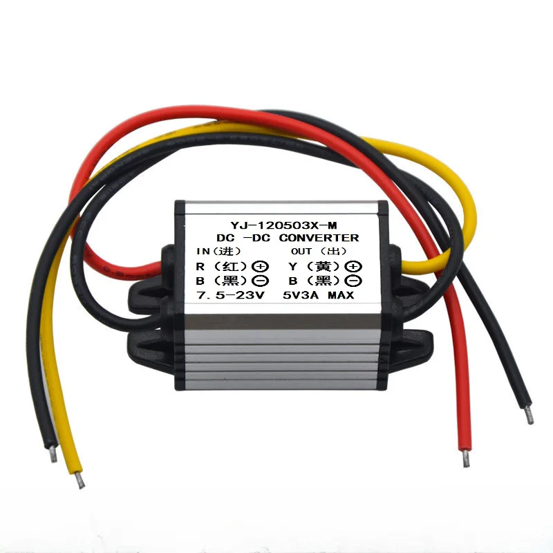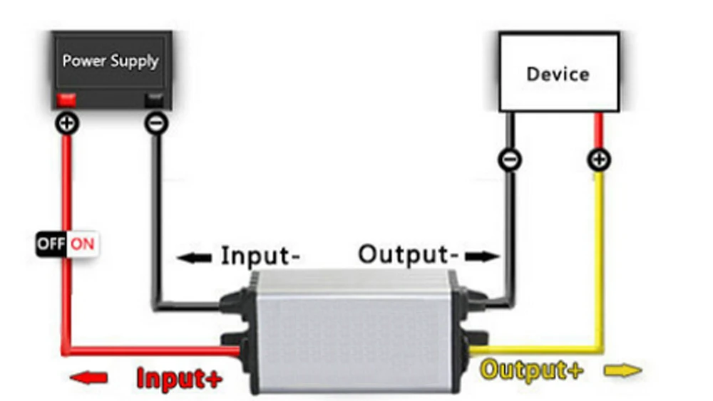 Feature: overheating protection, overcurrent protection, reverse polarity protection Waterproof plastic shell makes the converter ideal for use in a wide range of applications including vehicles, security systems, hospital equipment, telecommunications etc. Built-in over-voltage, under-voltage, overload, over-heat and short circuit protection. The length of the line is about 13CM, slim, small volume, easy installation. Purpose :Motorcycle photovoltaic panel Car alarms, radio, intercom, electr ic motors, audio, navigation, surveillance, LED car display, air fans, Waterproof, Shockproof Design. Note: Please be remind to make sure wiring carefully & correctly. Input wire color : (+)Red, (-)Black. Output wire color : (+)Yellow, (-)Black. No wiring reverse short-circuit protection for this device.