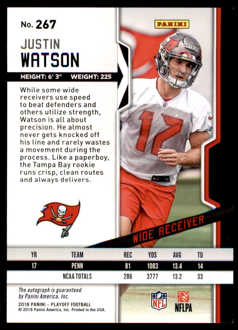 | 2018 Panini Playoff Autograph 4th Down 07/10 267 Justin Watson Auto RC |