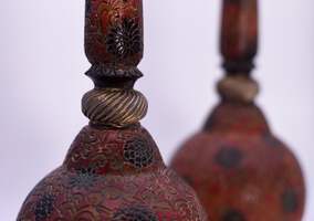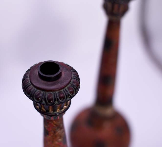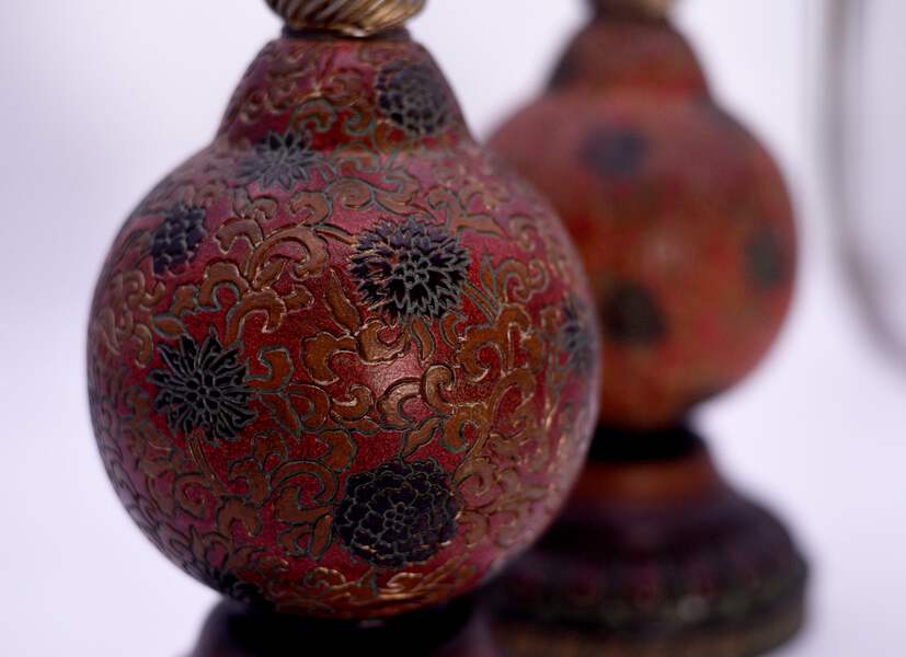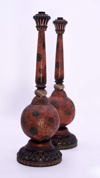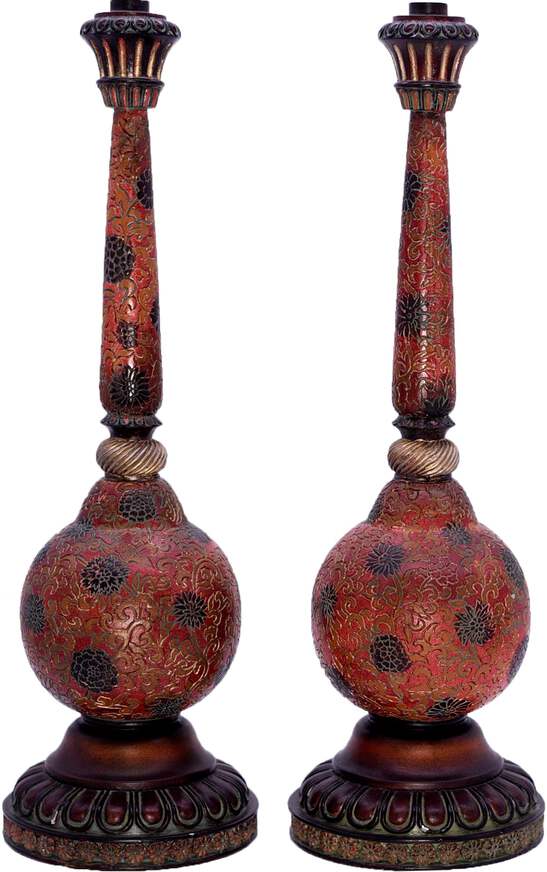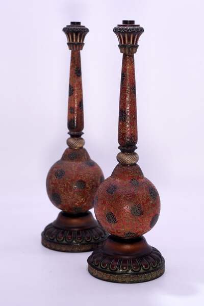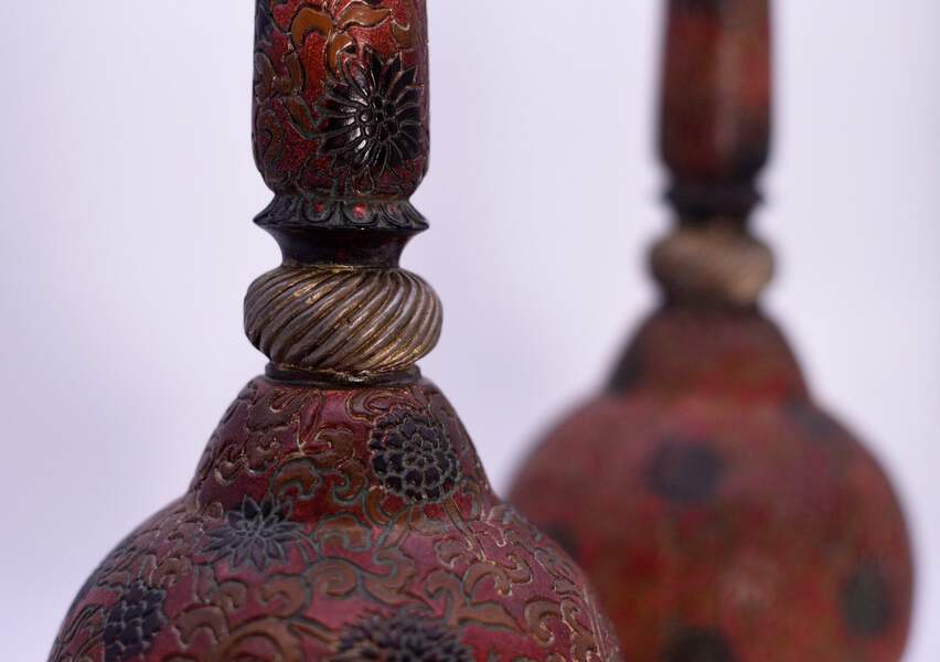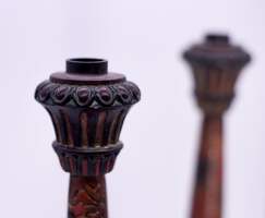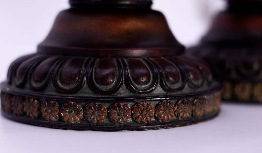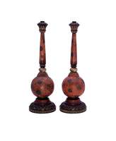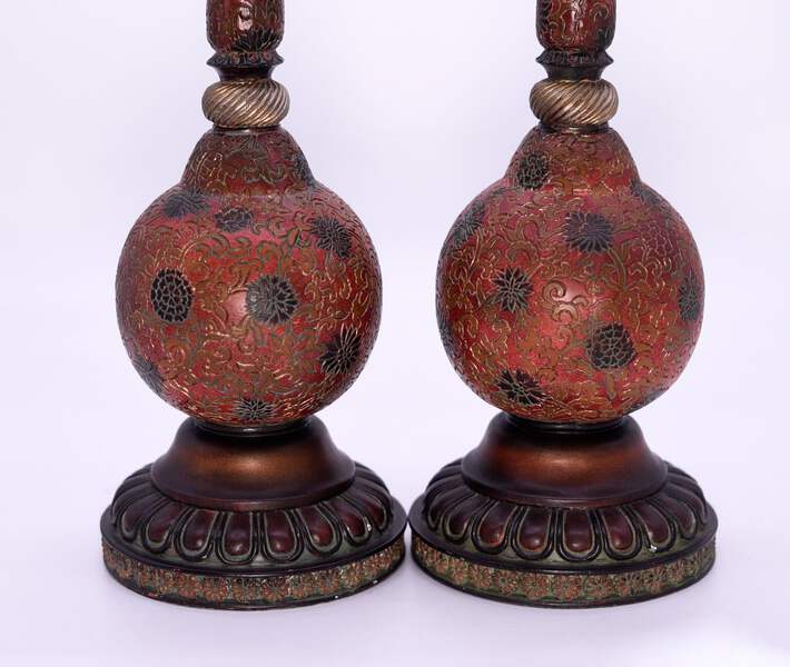 This pair of Vintage Carved Relief Candlesticks boast a distinctive red, gold and black color palette, with an intricate chrysanthemum design. Made of resin, they are perfect for adding a touch of elegance to your dining room table or fireplace mantle. The craftsmanship of these candlesticks ensures a unique, eye-catching aesthetic for your home.