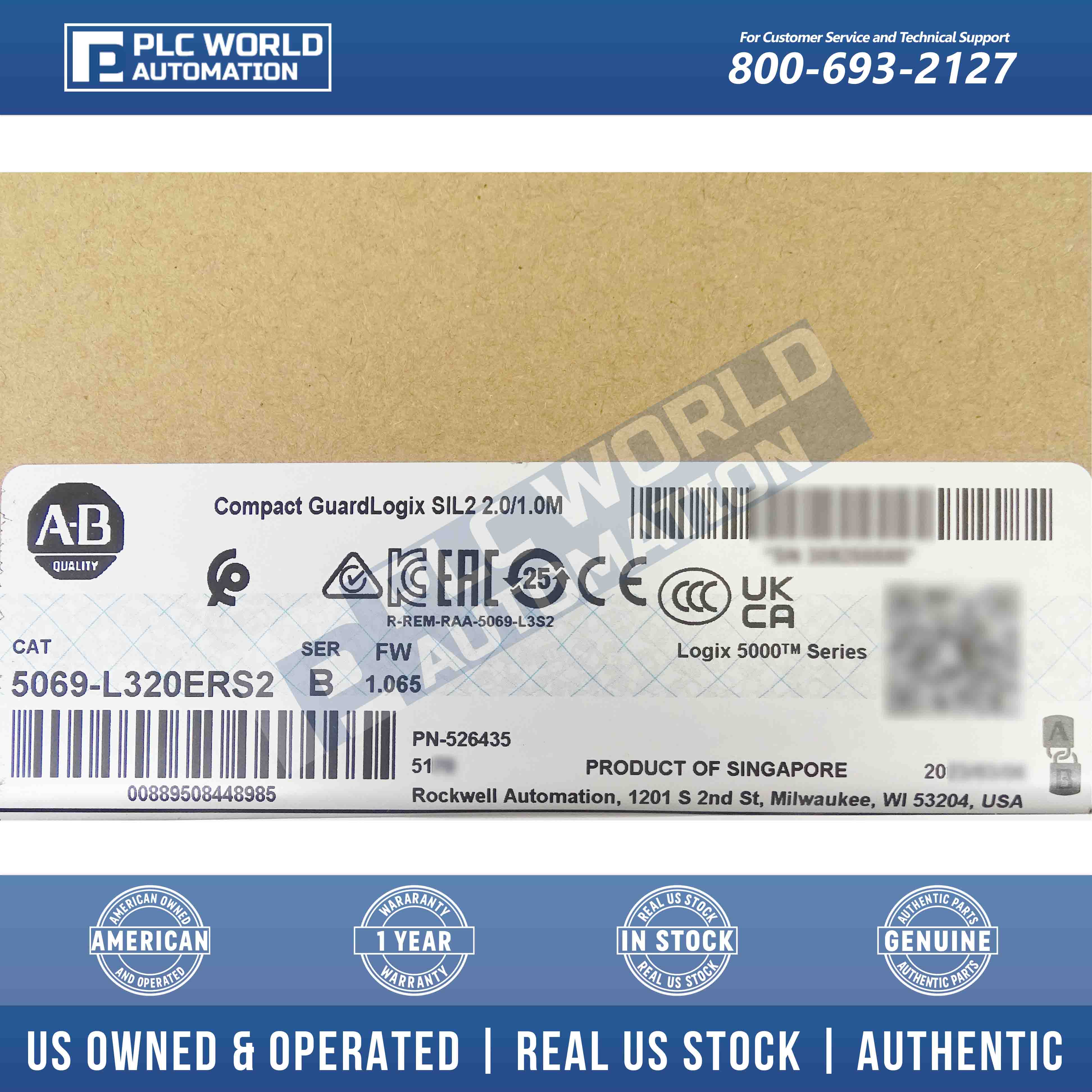 New Factory Sealed Allen Bradley 5069-L320ERS2 Series B GuardLogix 5380 Safety Controller, SIL2 2.0/1.0MB, with FREE UPS 2 Day Delivery & 2 Year Warranty