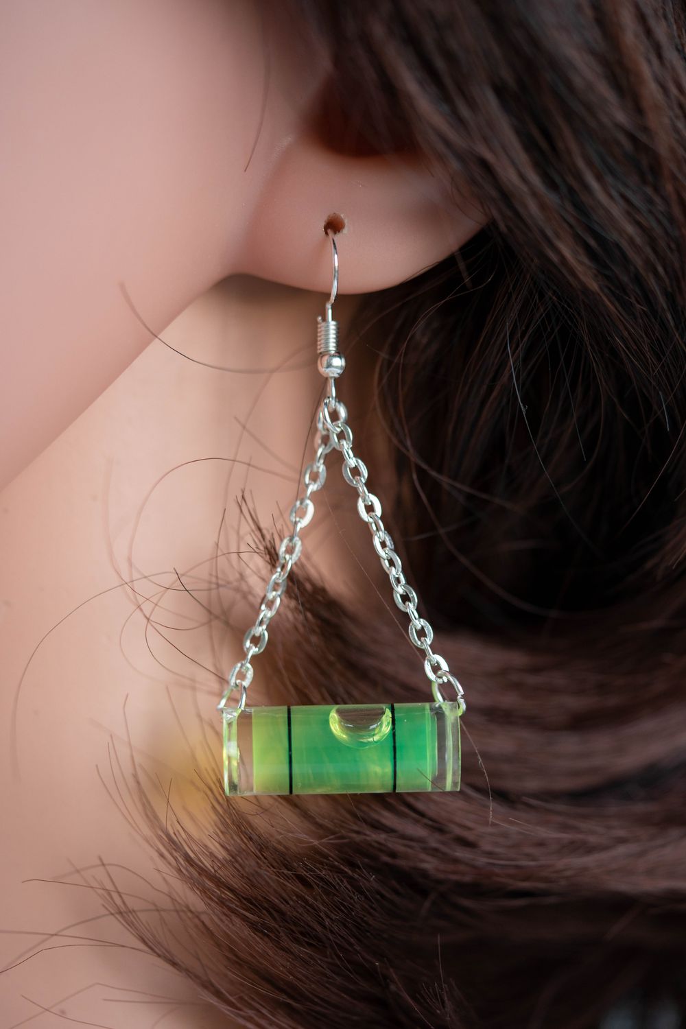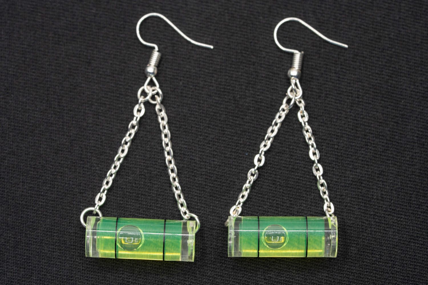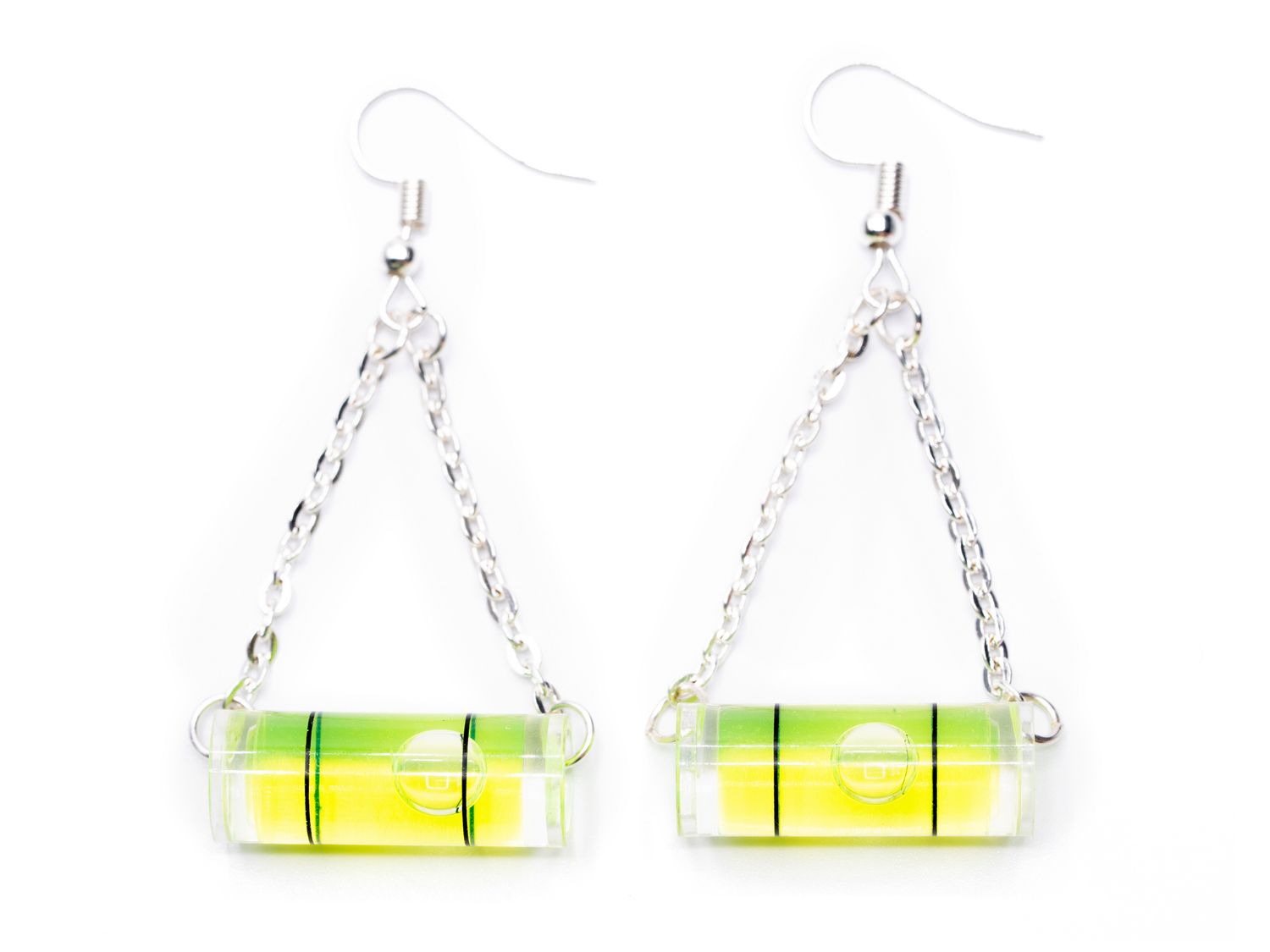 Coole Ohrringe mit funktionierender Wasserwaage.