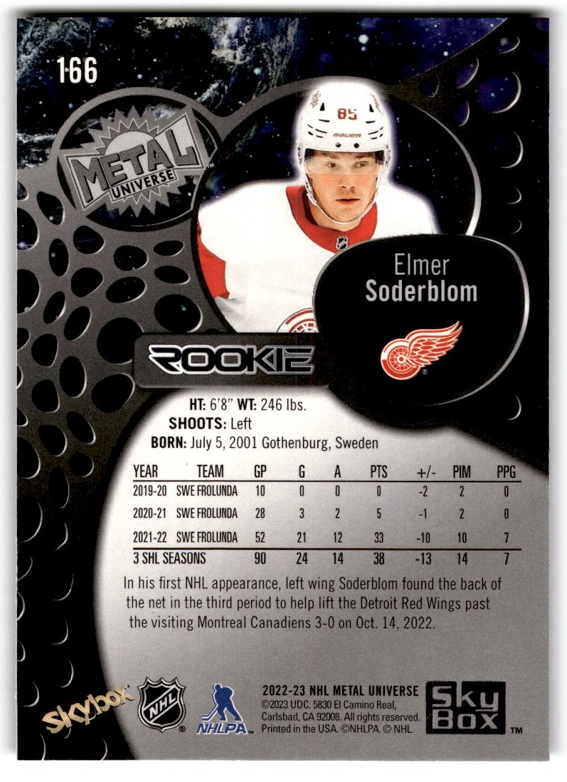 | Elmer Soderblom 2022-23 Metal Universe Rookie #166 Detroit Red Wings |