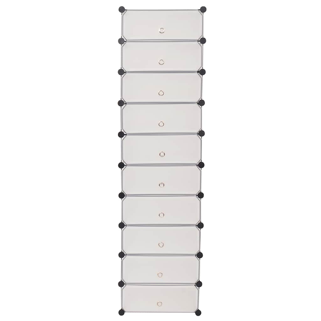 This modern shoe organizer is all about helping anyone who wants to neatly store and manage their footwear collection. With a sleek white finish and a versatile design, it fits right in with various interior styles, making it a great choice for hallways, bedrooms, or anywhere you want to keep shoes organized.