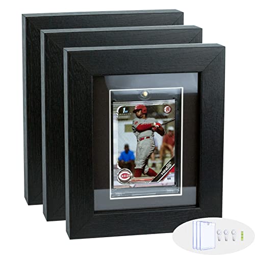Bivitre Trading Card Display Case - 3 Pack Baseball Card Display Case Wall Mount, Sports Card Display Frame for Basketball Football Hockey Cards, Black Standard (1 Card x3PCS)