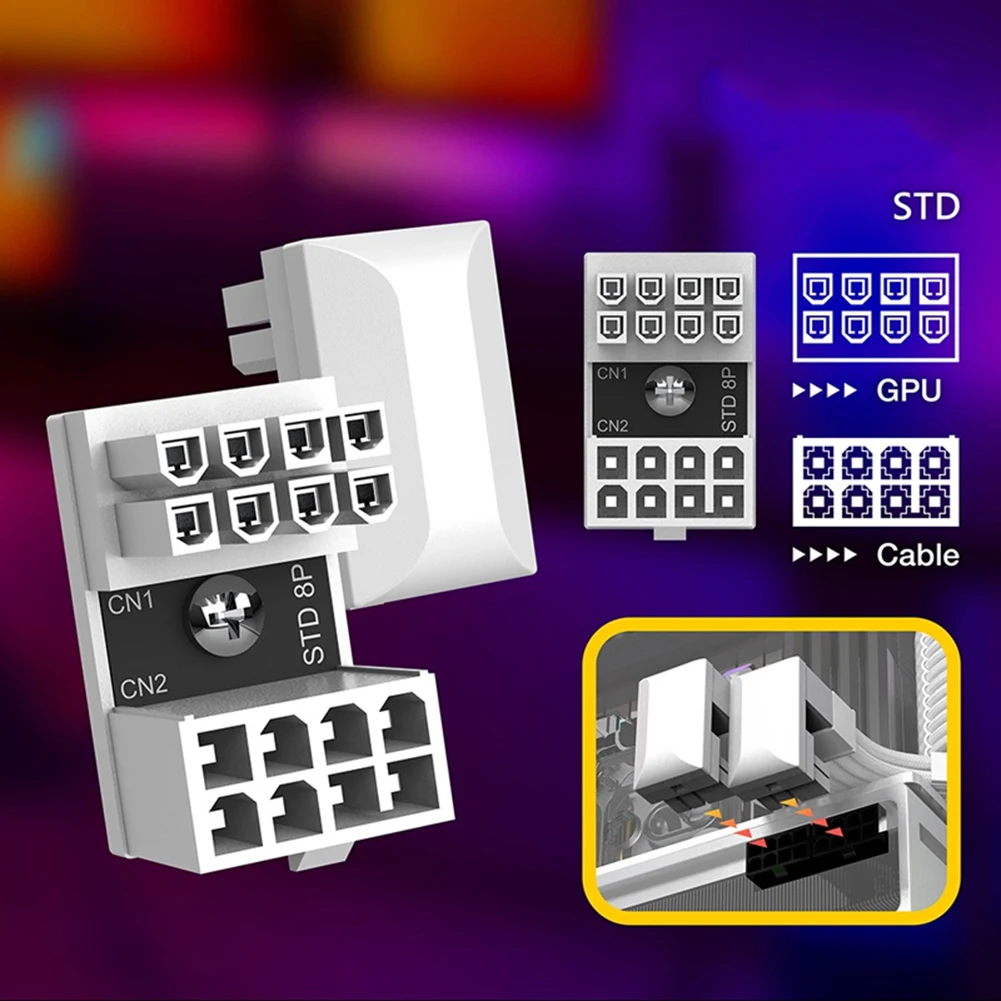 180 Degree 8 Pin Female to 8 Pin Male Adapter Desktop Computer Accessories 8 Pin Adapter Fireproof Plastic DIY for Graphics Card