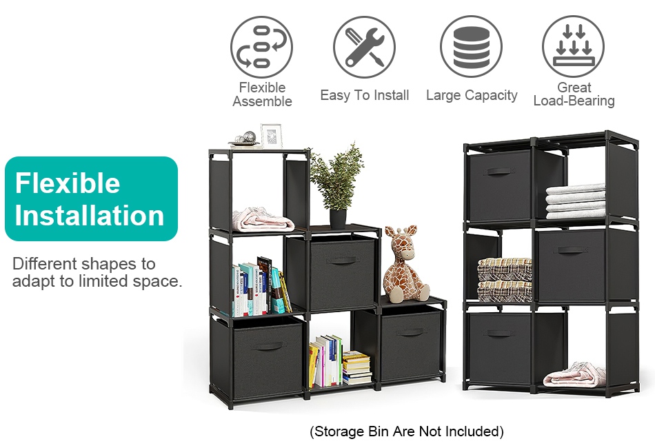 - Easy To Assemble:Simple structure and detailed installation makes this 9 cubes storage shelf is easy to assemble,no tools,drilling or screws are needed. One person can independently finish assemble and disassemble.