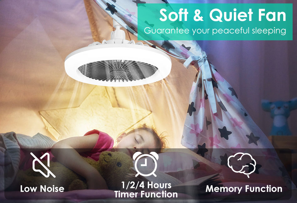 Our 2-in-1 multifunctional fan light is the best cooling partner in hot summer day. Come with adjustable fan speed, dimmable light color temperature and brightness, you can choose the most comfortable mode to meet various cooling and illumination demands. Smart timer setting ensures you all night sleep and no need to wake up to turn off. With convenient remote control, this easy-to-install socket fanlight brings great ventilation and airflow for living room, kitchen, bedroom, study room, etc..