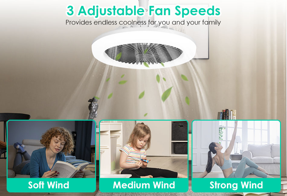 - 3 Fan Speeds:Come with 3 adjustable fan speeds,our LED fan provides endless coolness for you and your family. You can choose the most comfortable speed according to the environment temperature. Soft gear runs quietly and perfectly fits for sleeping at night,strong gear quickly cools you down in hot summer.