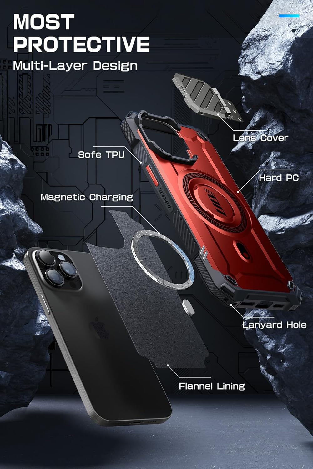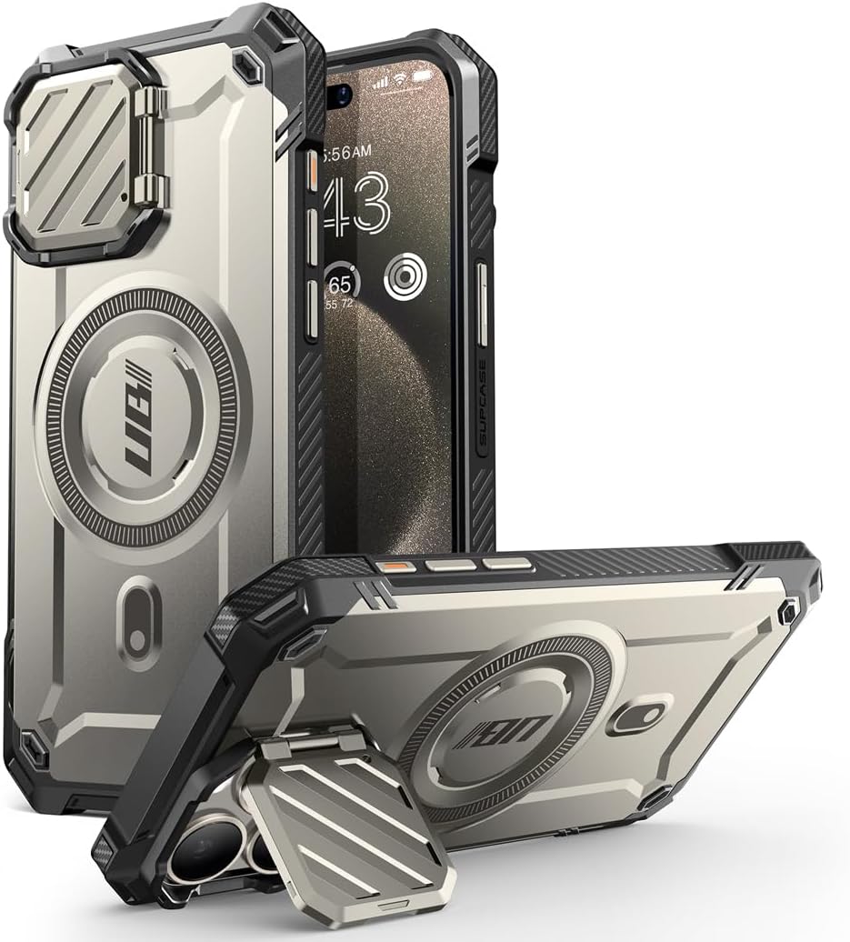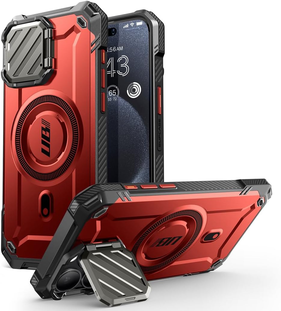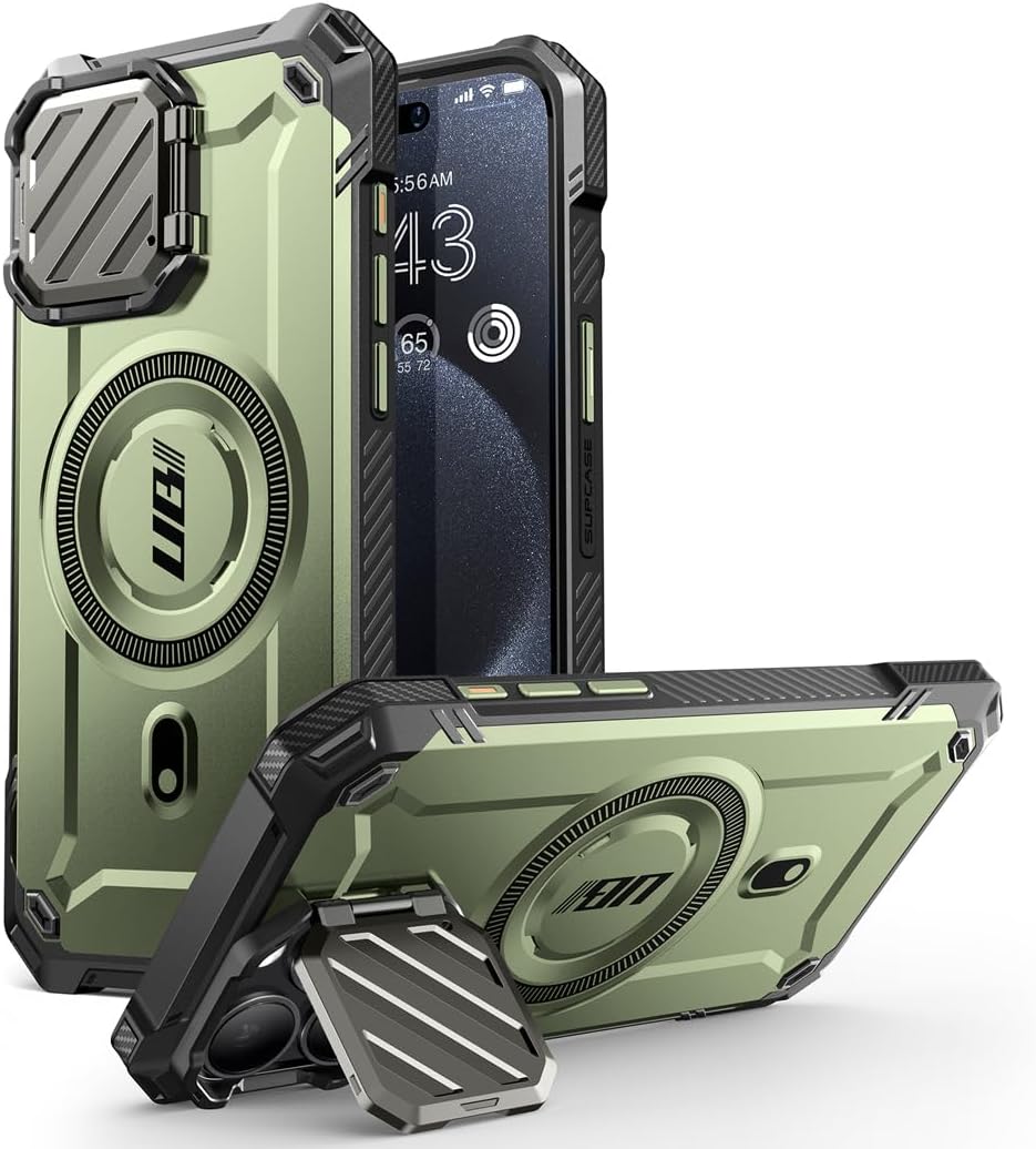 SUPCASE UB Mag XT for iPhone 15 Pro Case 6.1" with Camera Cover, [Compatible with MagSafe] Heavy Duty Rugged Case with Built-in Kickstand