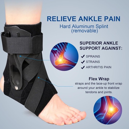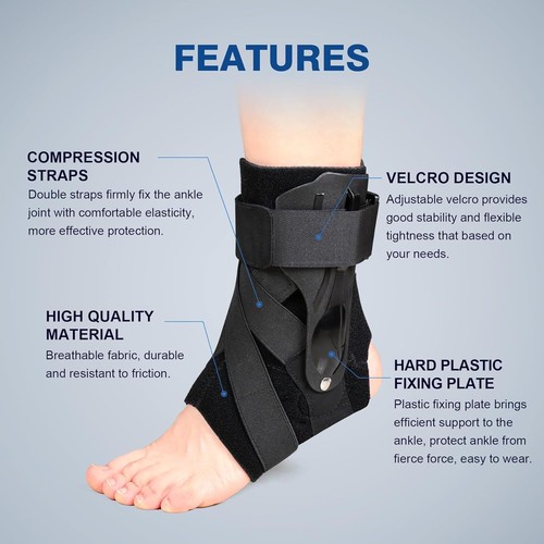 • 【 ANKLE SUPPORT BRACE 】- Ankle brace with reinforced side stabilizer and curved arch design can quickly reduce the pain and pressure of the ankle. Ankle support brace can also help Achilles tendinitis, joint pain, minor sprain pain relief. Ankle brace for sprained ankle is also an ankle stabilizer recommended by orthopedic surgeons