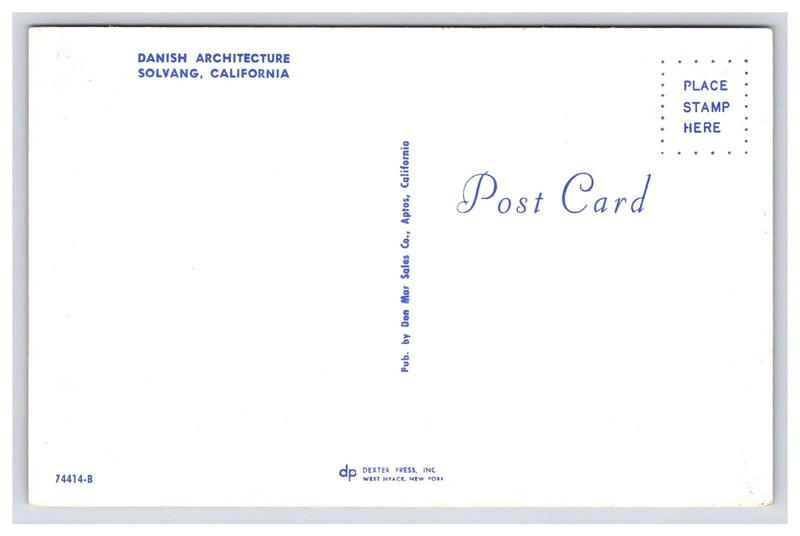 You are looking at a: CA Danish Architecture, Solvang, California postcard that is unposted. The postcard is in great shape.