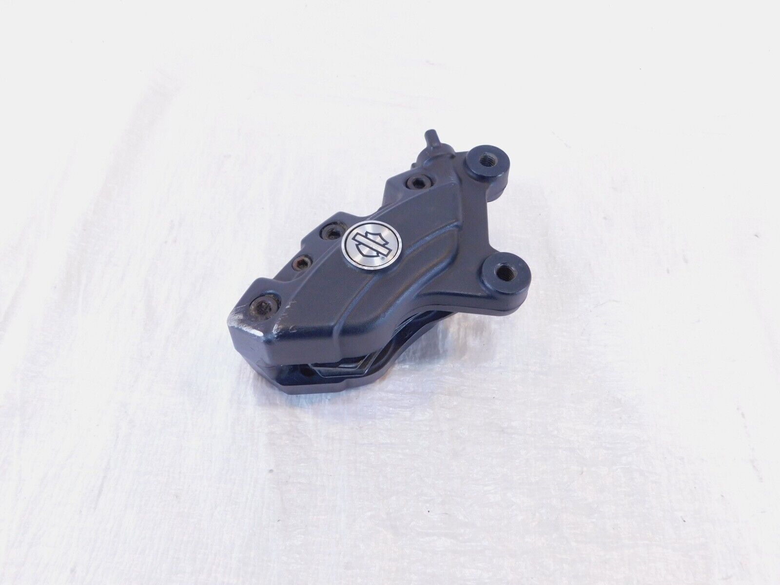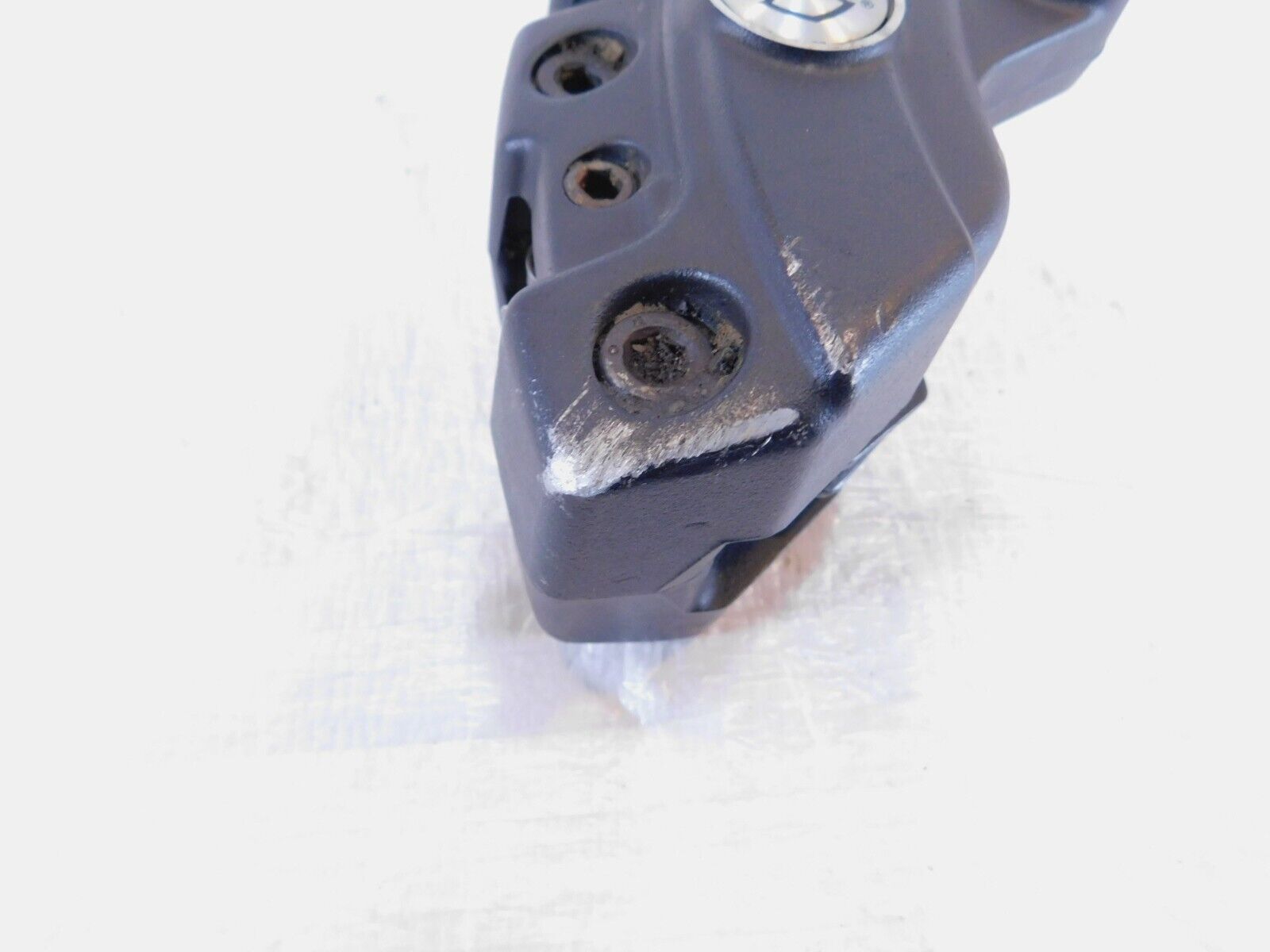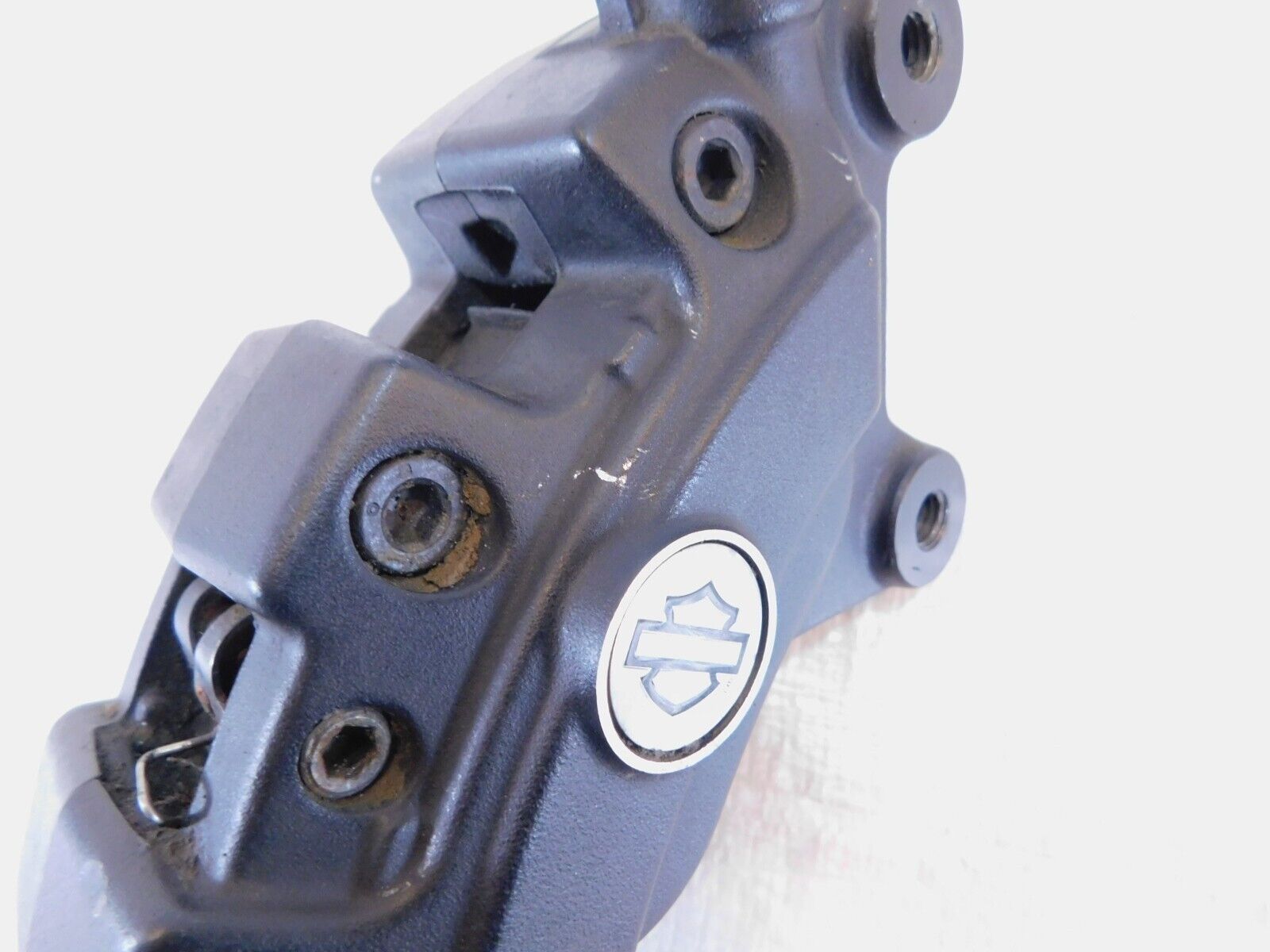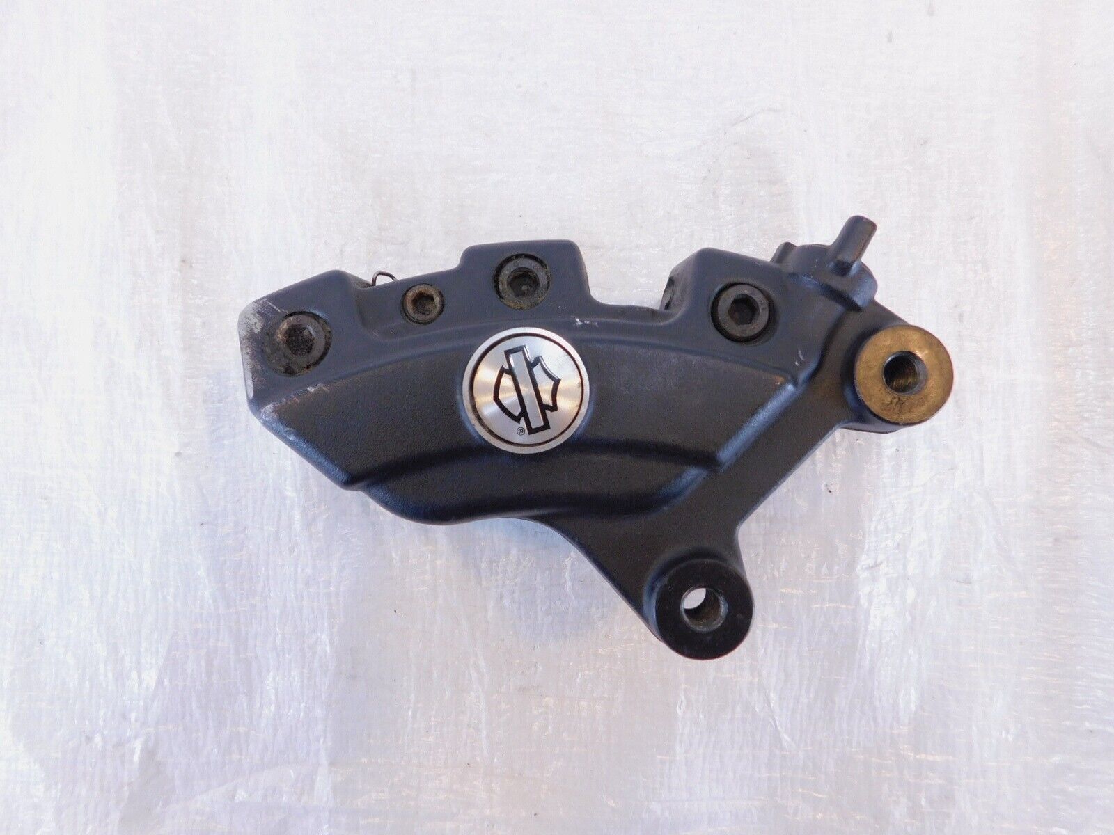 This is a used brembo right front brake caliper. It is a little dirty from previous use and storage and the pads should probably be replaced. There are some scuffs and chipping paint (as pictured)
